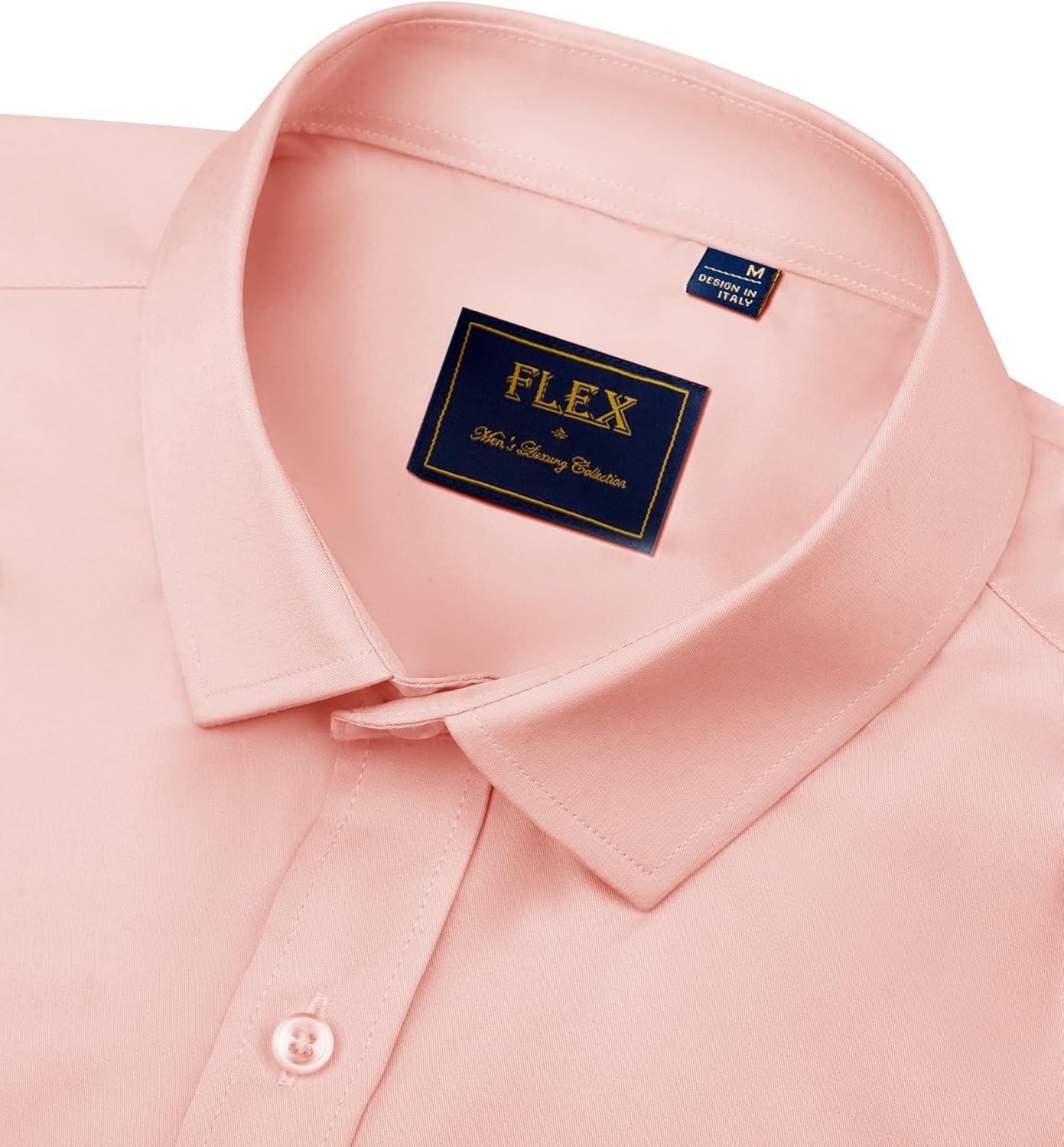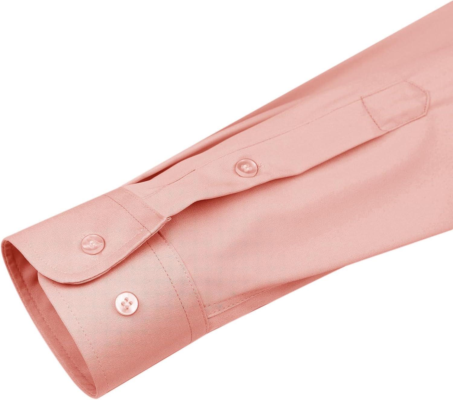 J.VER Men's Dress Shirts Solid Long Sleeve Stretch Wrinkle-Free Formal Shirt Business Casual Button Down Shirts(Coral)