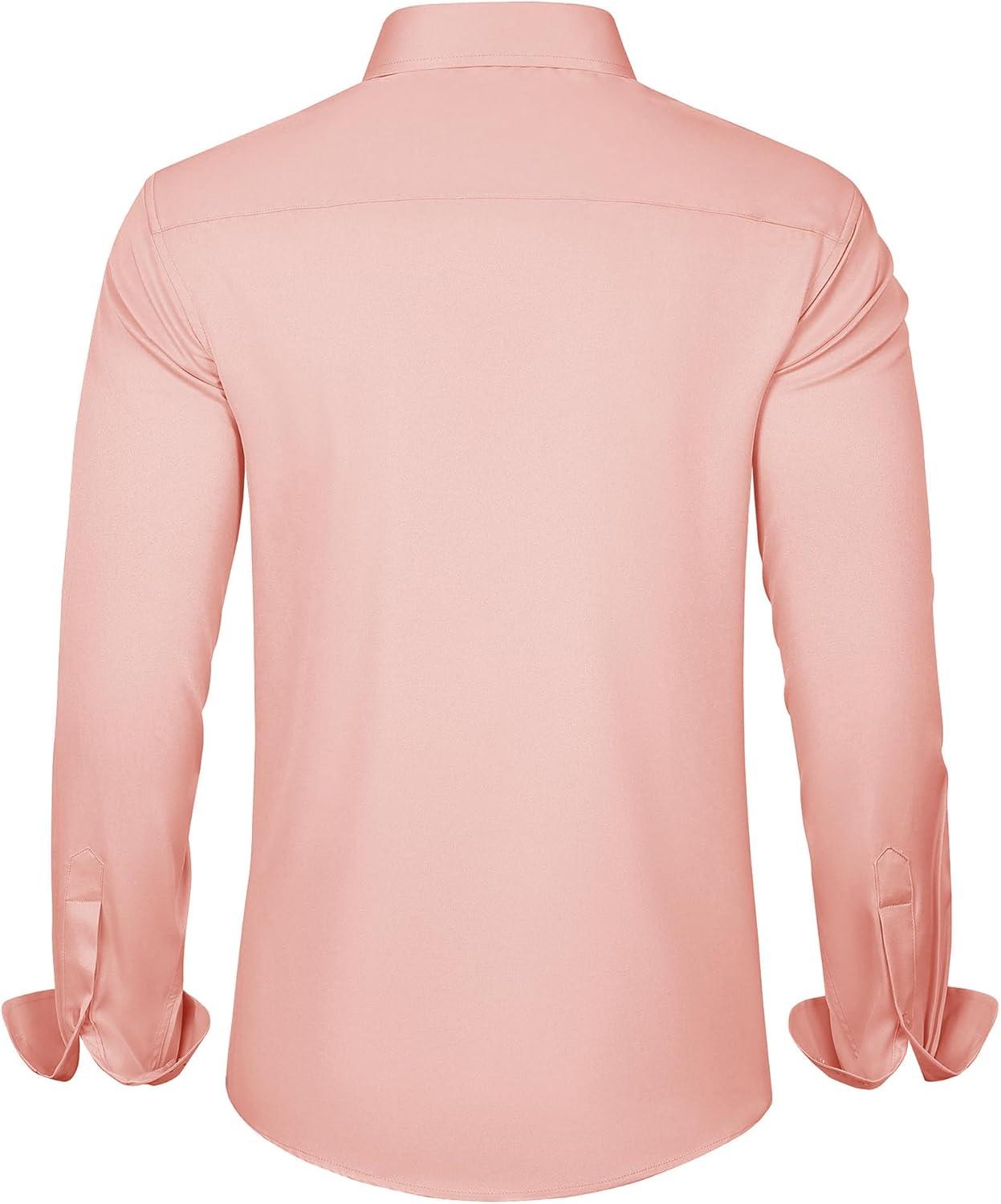 imageJVER Mens Dress Shirts Solid Long Sleeve Stretch WrinkleFree Formal Shirt Business Casual Button Down ShirtsCoral