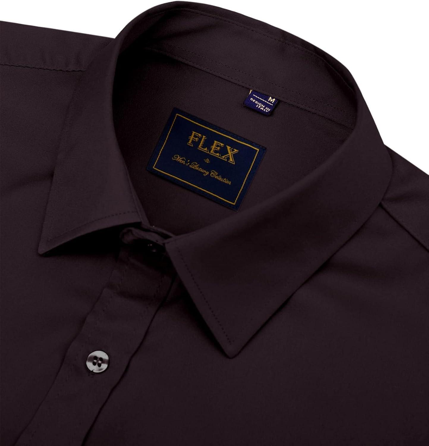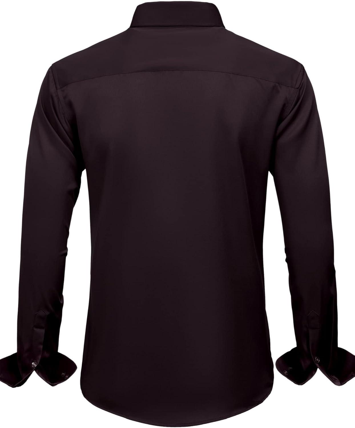 J.VER Men's Dress Shirts Solid Long Sleeve Stretch Wrinkle-Free Formal Shirt Business Casual Button Down Shirts(Dark Brown)