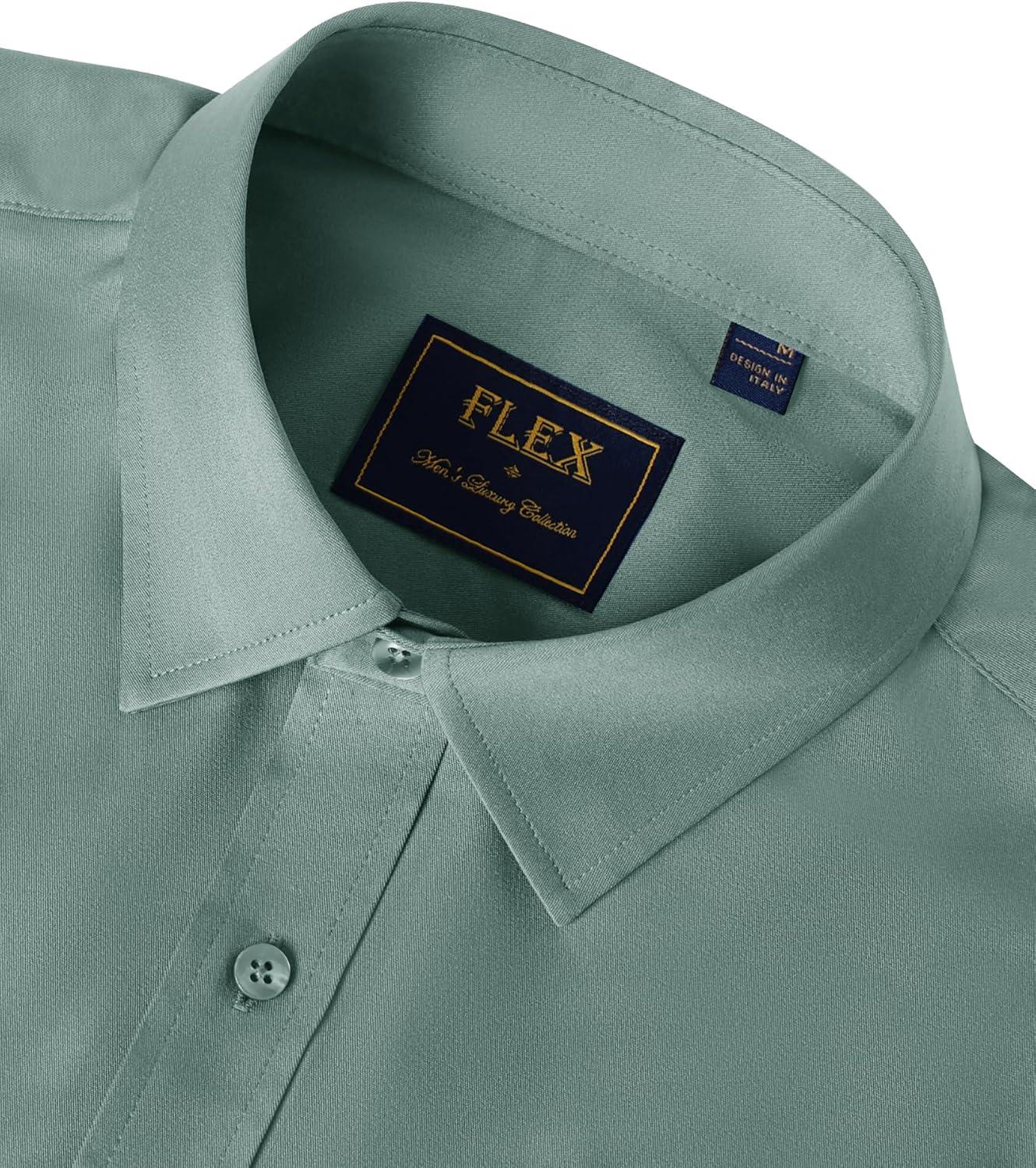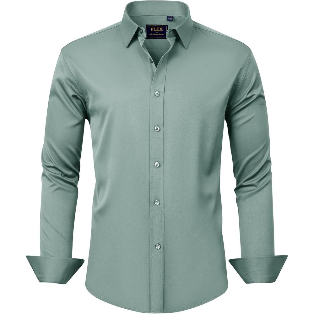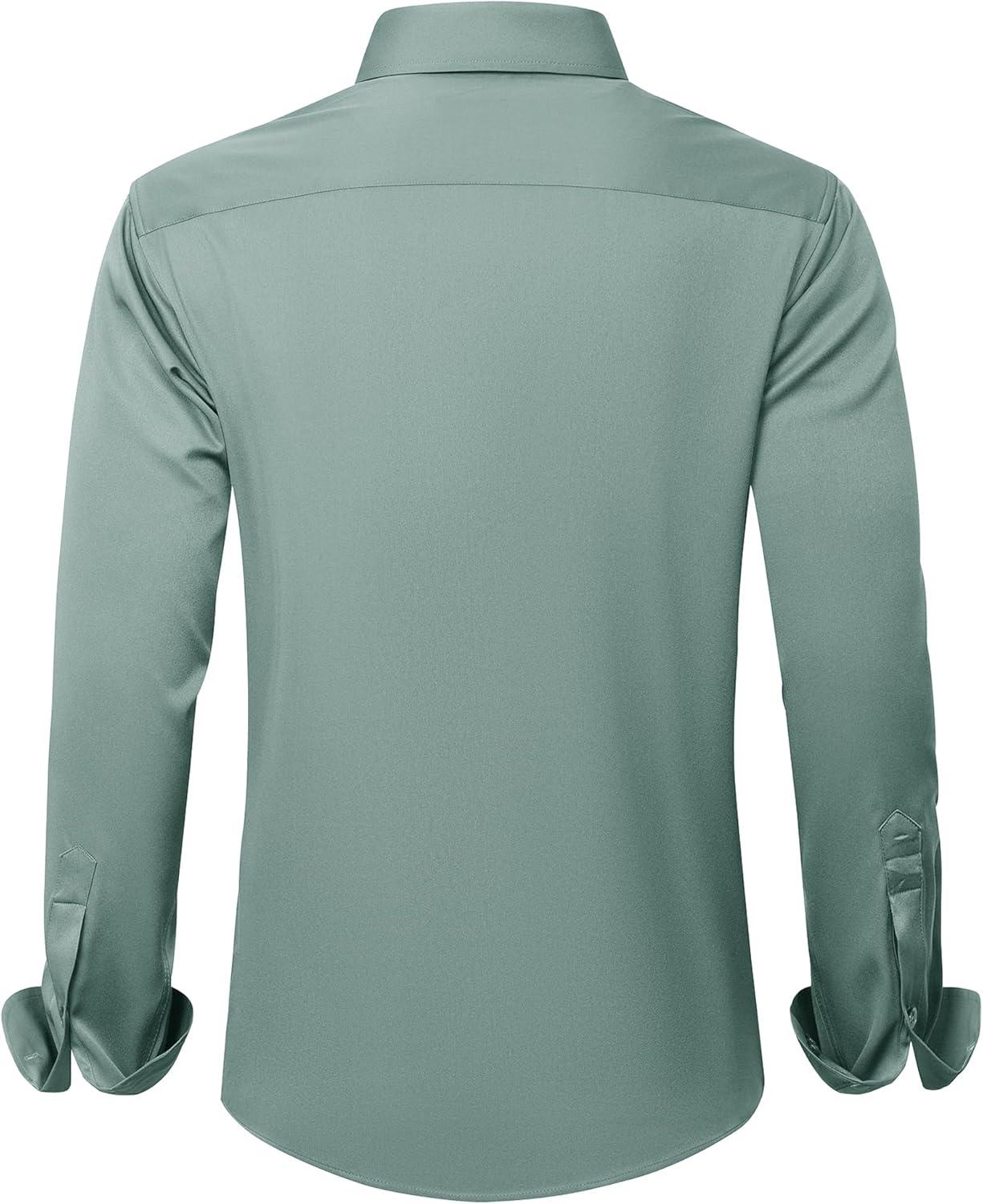 J.VER Men's Dress Shirts Solid Long Sleeve Stretch Wrinkle-Free Formal Shirt Business Casual Button Down Shirts(Green Grey)