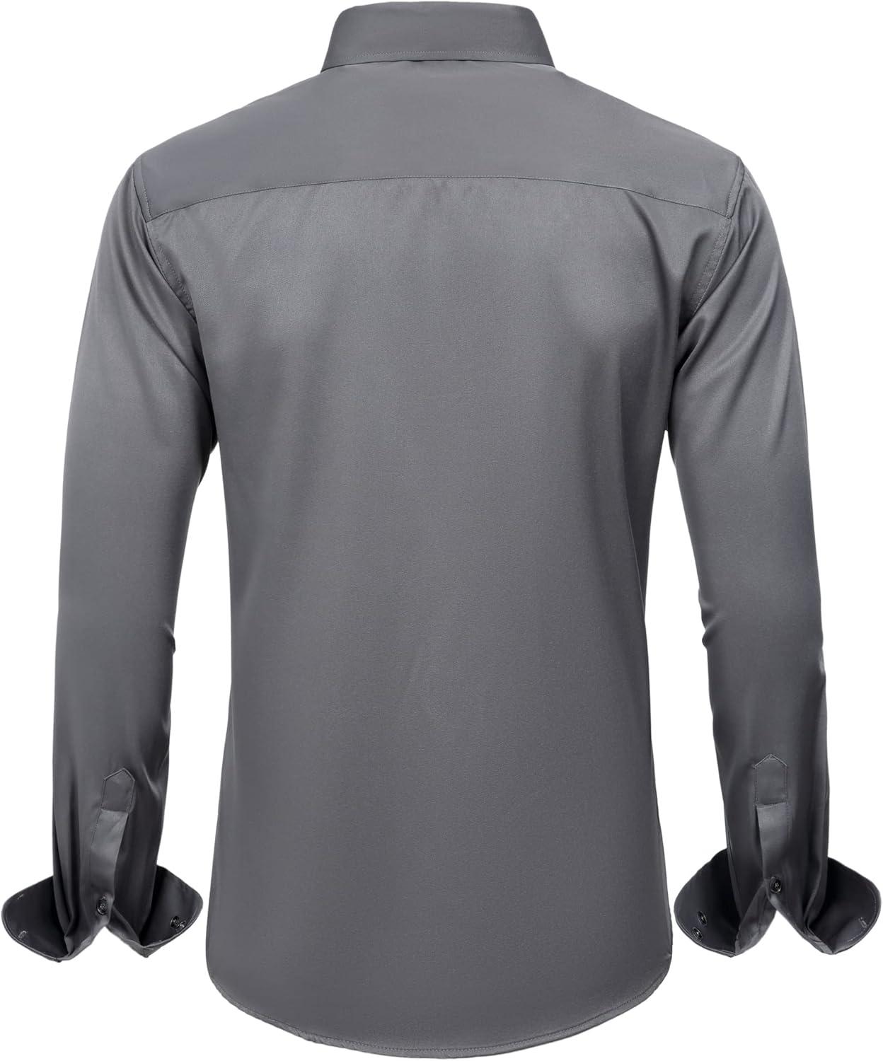 J.VER Men's Dress Shirts Solid Long Sleeve Stretch Wrinkle-Free Formal Shirt Business Casual Button Down Shirts(Grey)