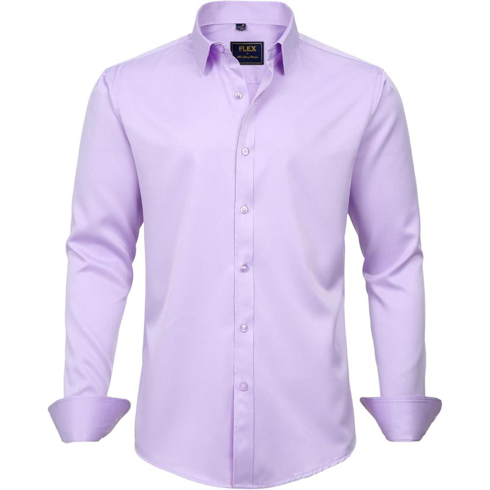 J.VER Men’s Dress Shirts Solid Long Sleeve Stretch Wrinkle-Free Formal Shirt Business Casual Button Down Shirts(Lavender Purple)
