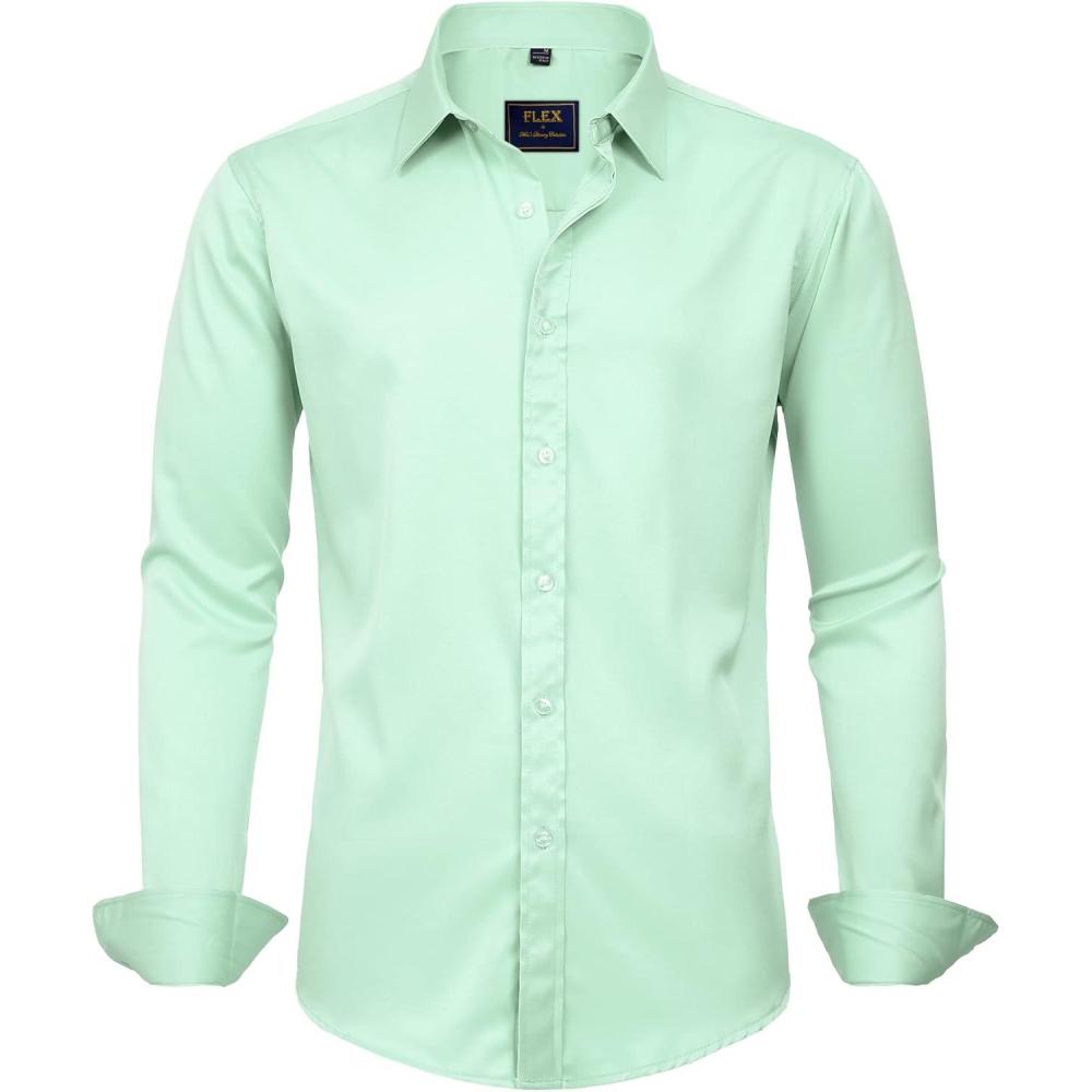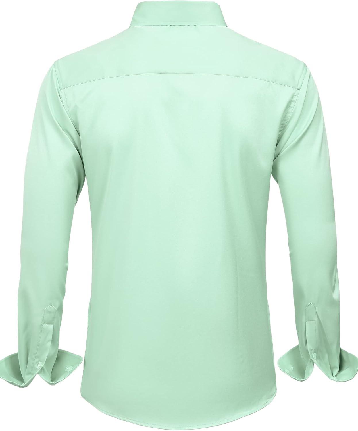 J.VER Men's Dress Shirts Solid Long Sleeve Stretch Wrinkle-Free Formal Shirt Business Casual Button Down Shirts(Light Green)