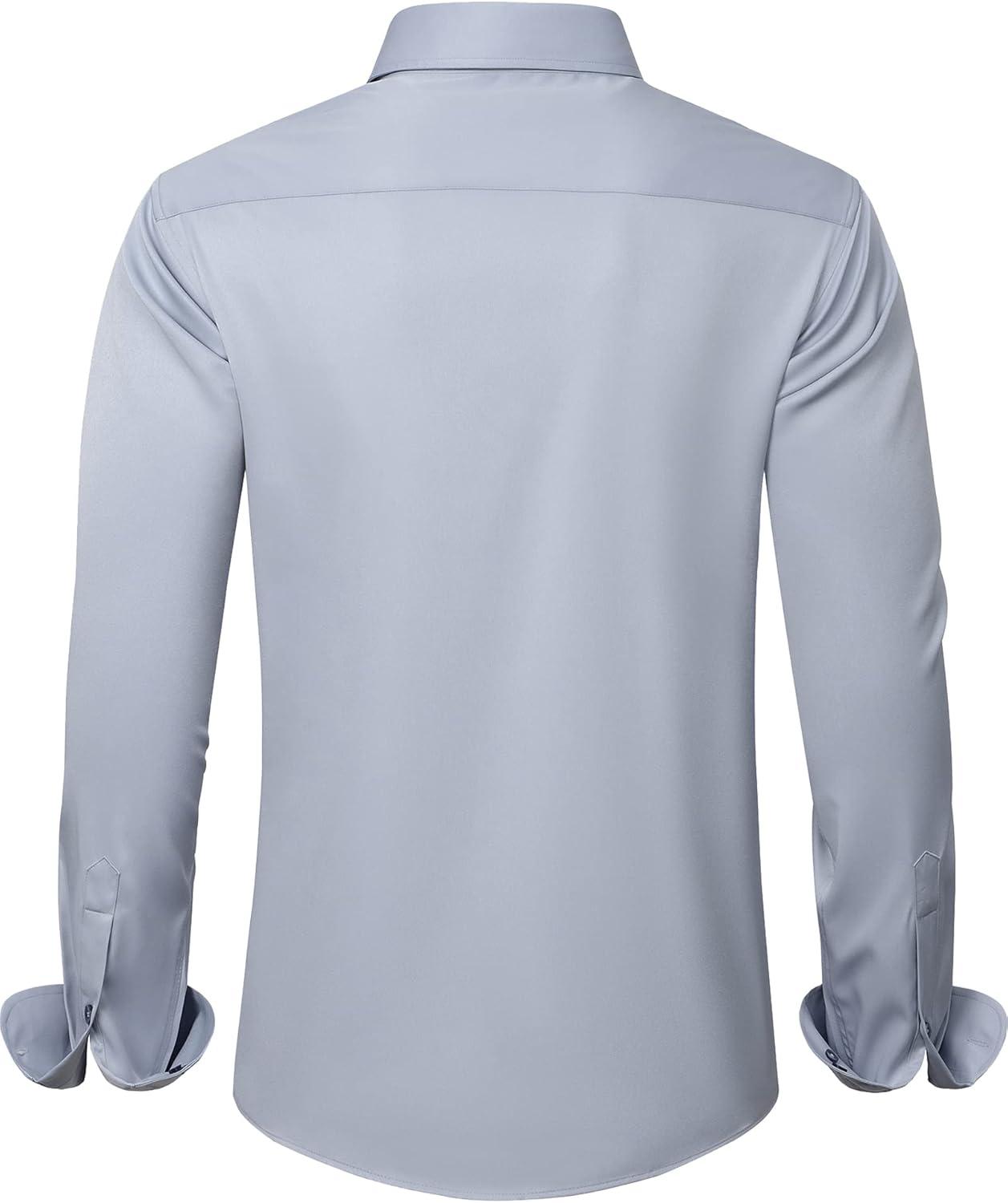 J.VER Men's Dress Shirts Solid Long Sleeve Stretch Wrinkle-Free Formal Shirt Business Casual Button Down Shirts(Light Grey)