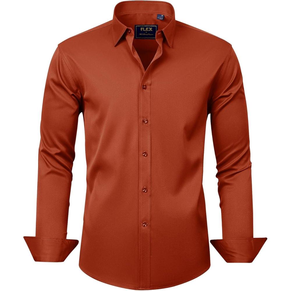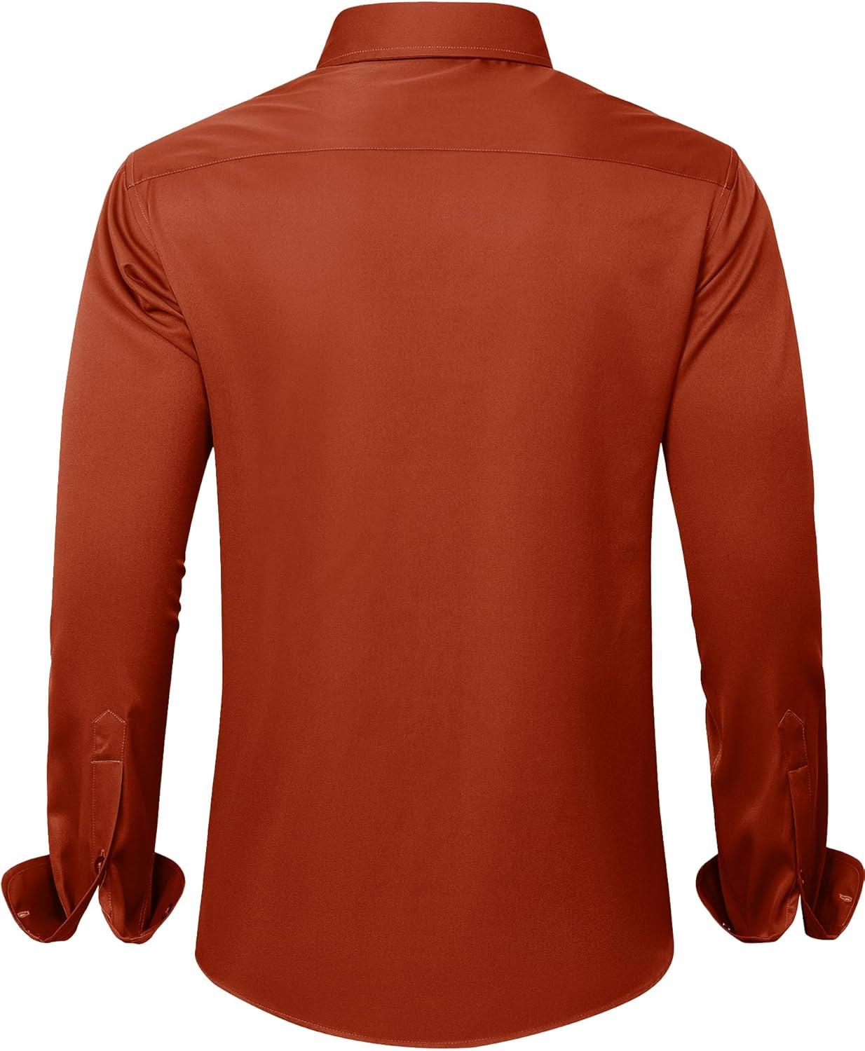 J.VER Men's Dress Shirts Solid Long Sleeve Stretch Wrinkle-Free Formal Shirt Business Casual Button Down Shirts(Persimmon Red)