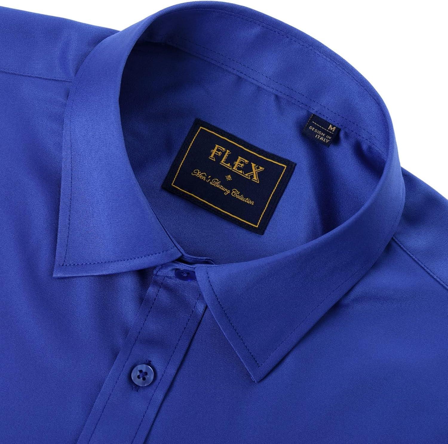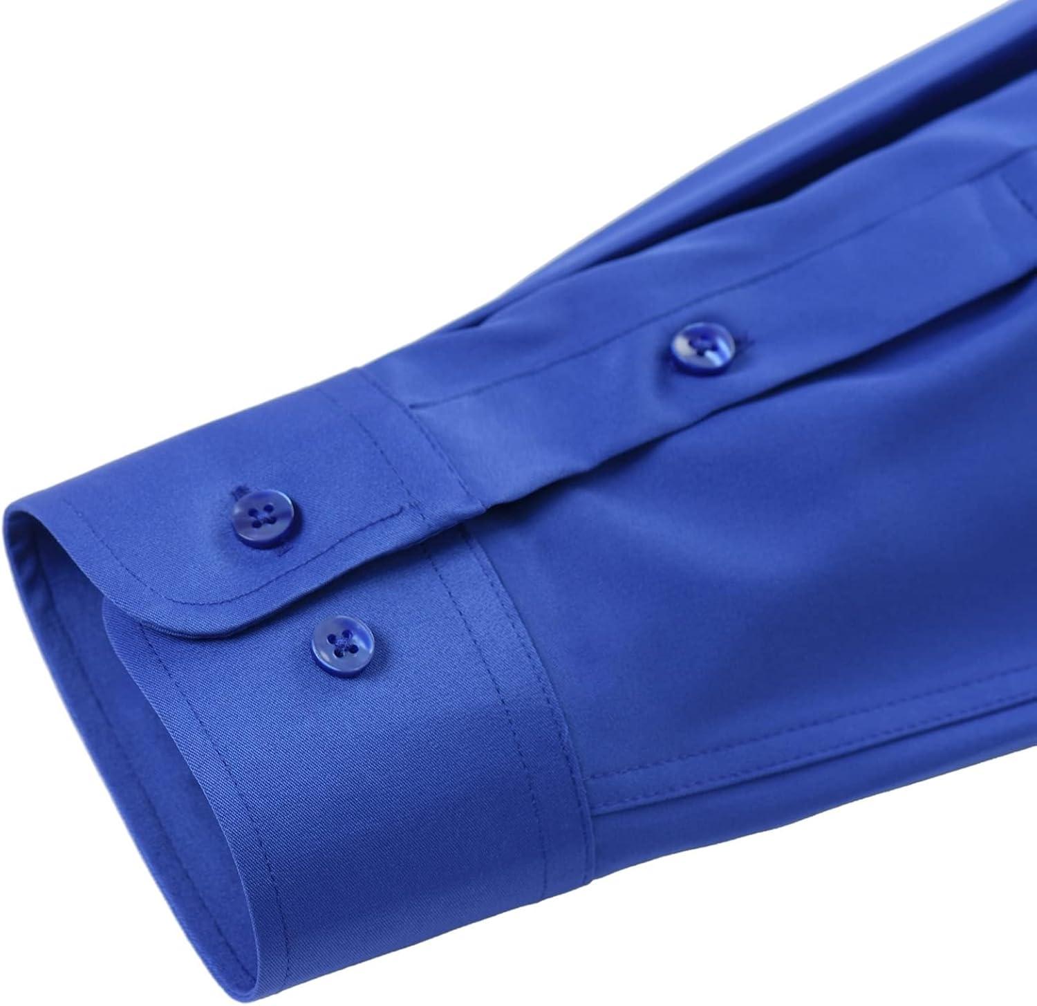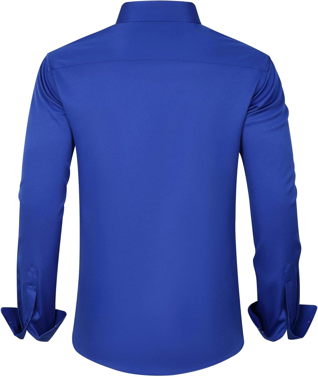 J.VER Men's Dress Shirts Solid Long Sleeve Stretch Wrinkle-Free Formal Shirt Business Casual Button Down Shirts(Royal Blue)