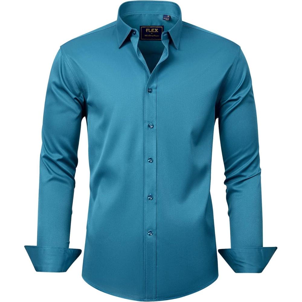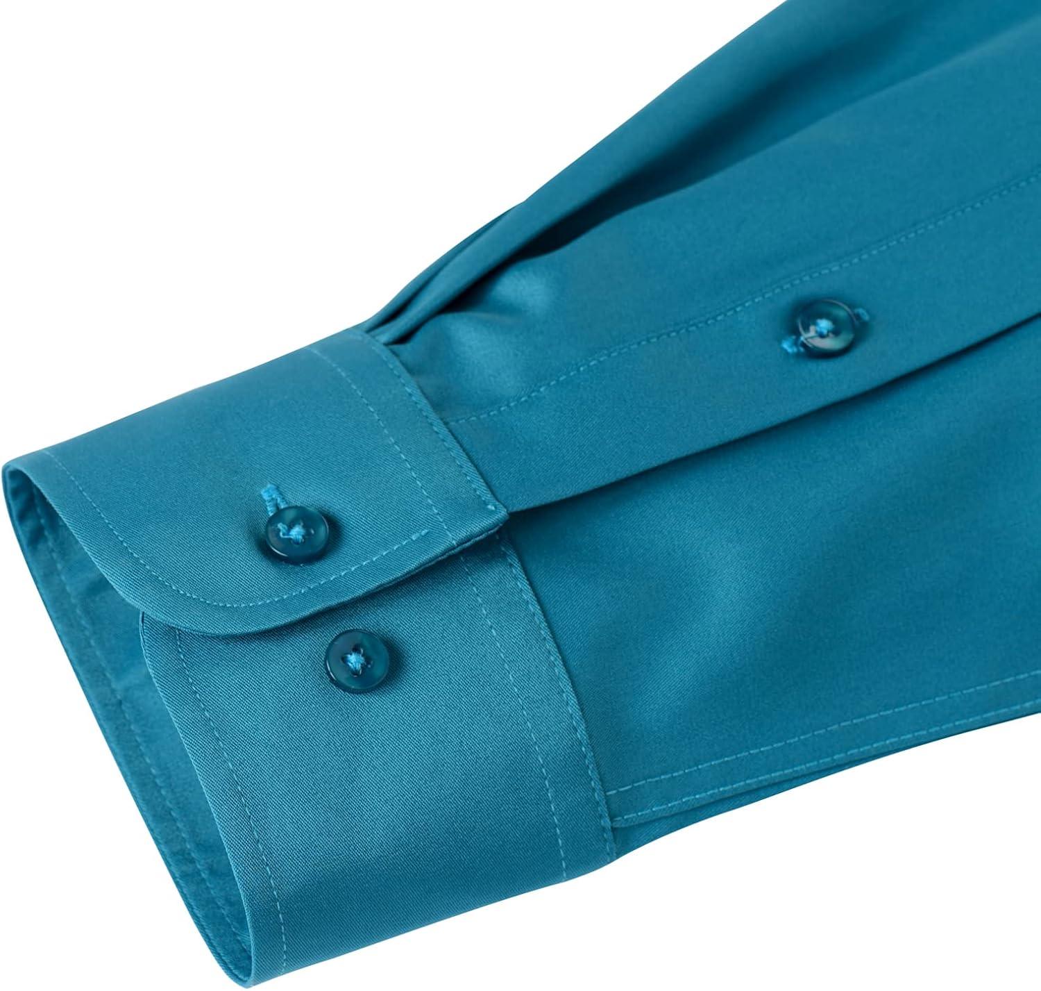 J.VER Men's Dress Shirts Solid Long Sleeve Stretch Wrinkle-Free Formal Shirt Business Casual Button Down Shirts(Teal)