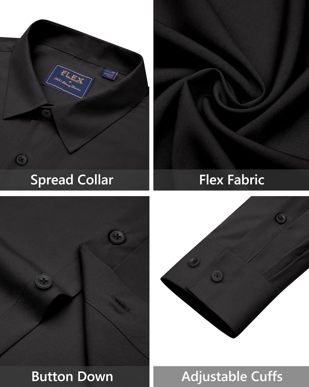 J.VER Men's Dress Shirts Stretch Long Sleeve Formal Shirt Solid Business Casual Button Down Shirts for Wedding Prom(Black)