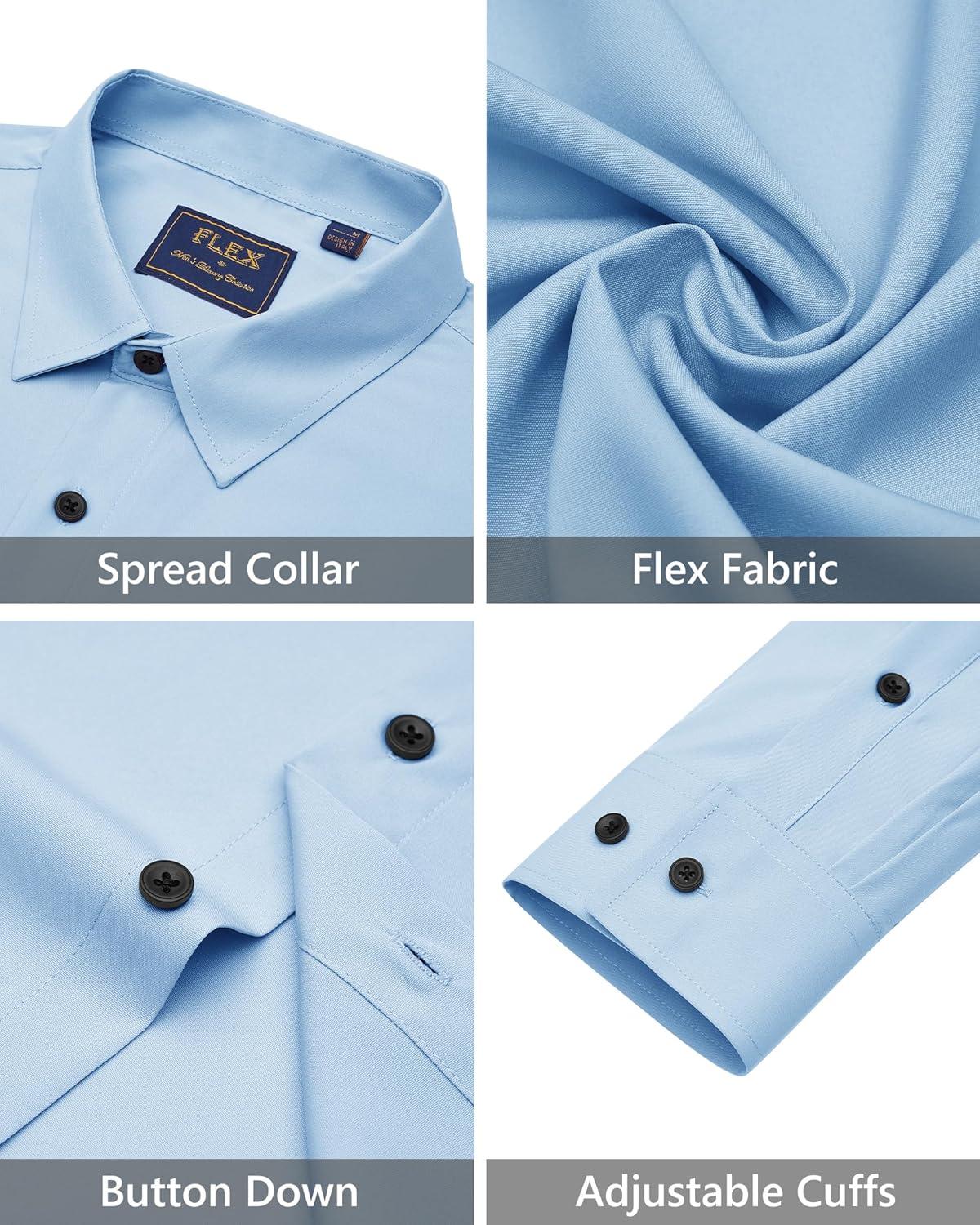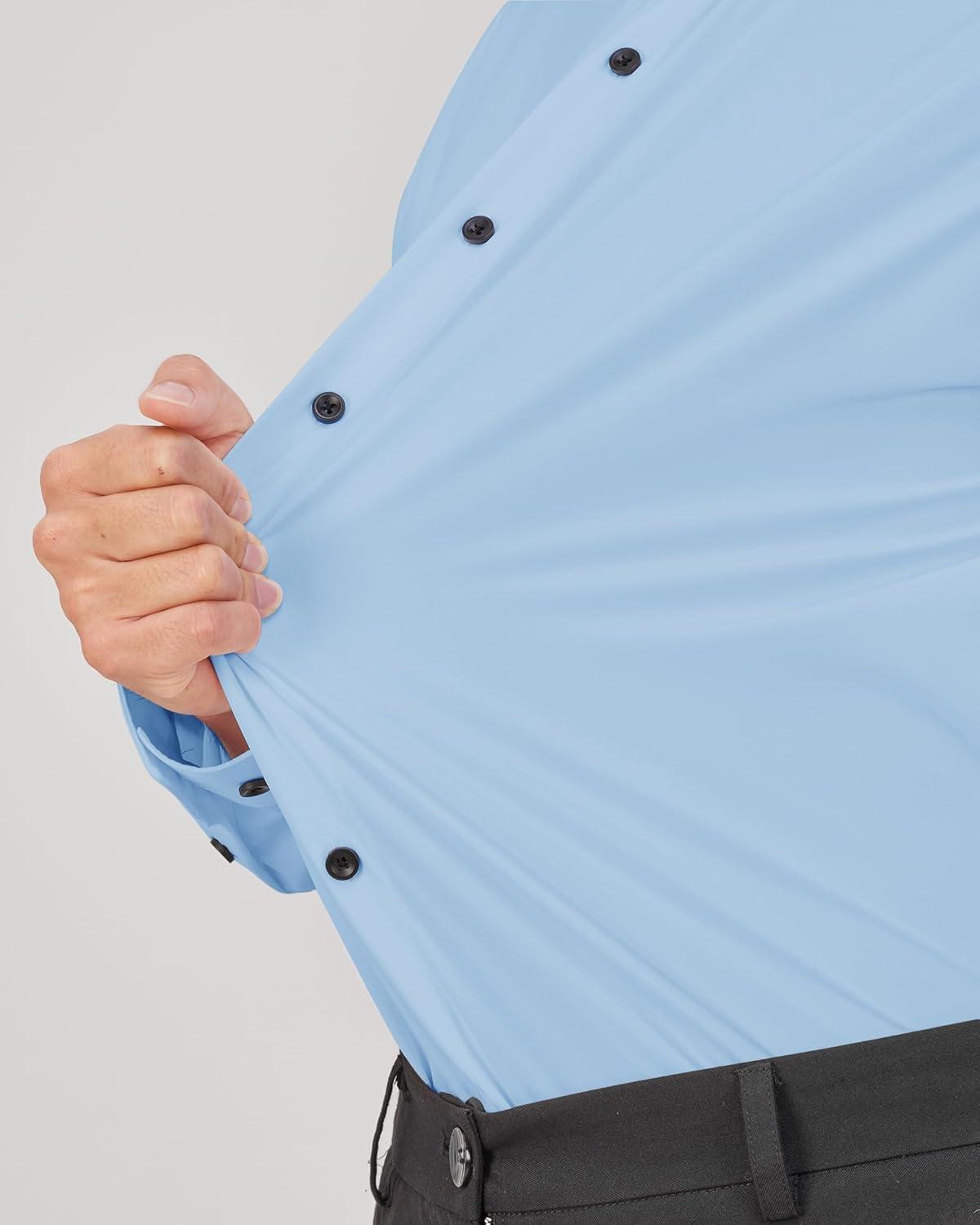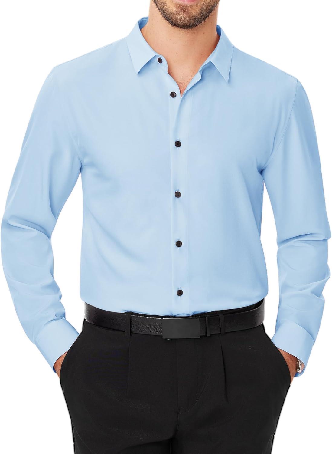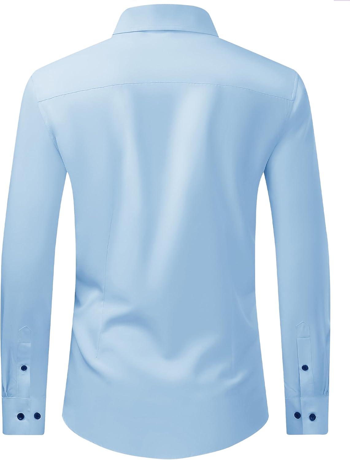 J.VER Men's Dress Shirts Stretch Long Sleeve Formal Shirt Solid Business Casual Button Down Shirts for Wedding Prom(Blue)