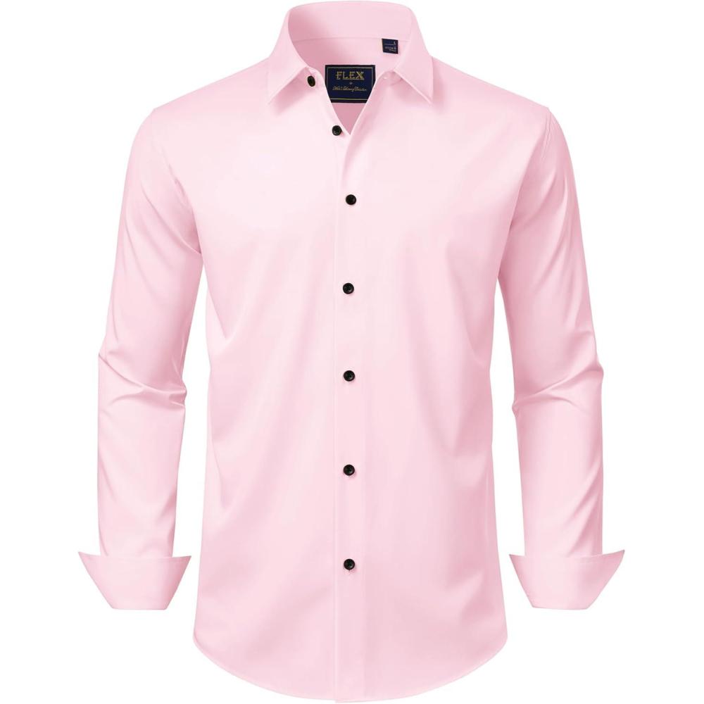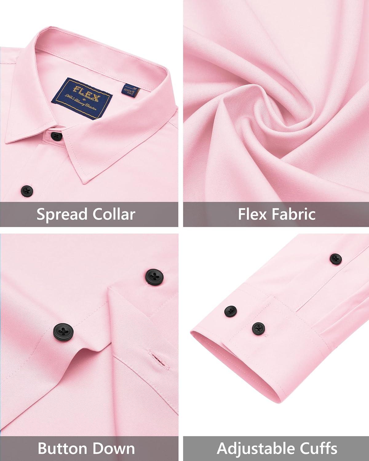 J.VER Men’s Dress Shirts Stretch Long Sleeve Formal Shirt Solid Business Casual Button Down Shirts for Wedding Prom(Pink)
