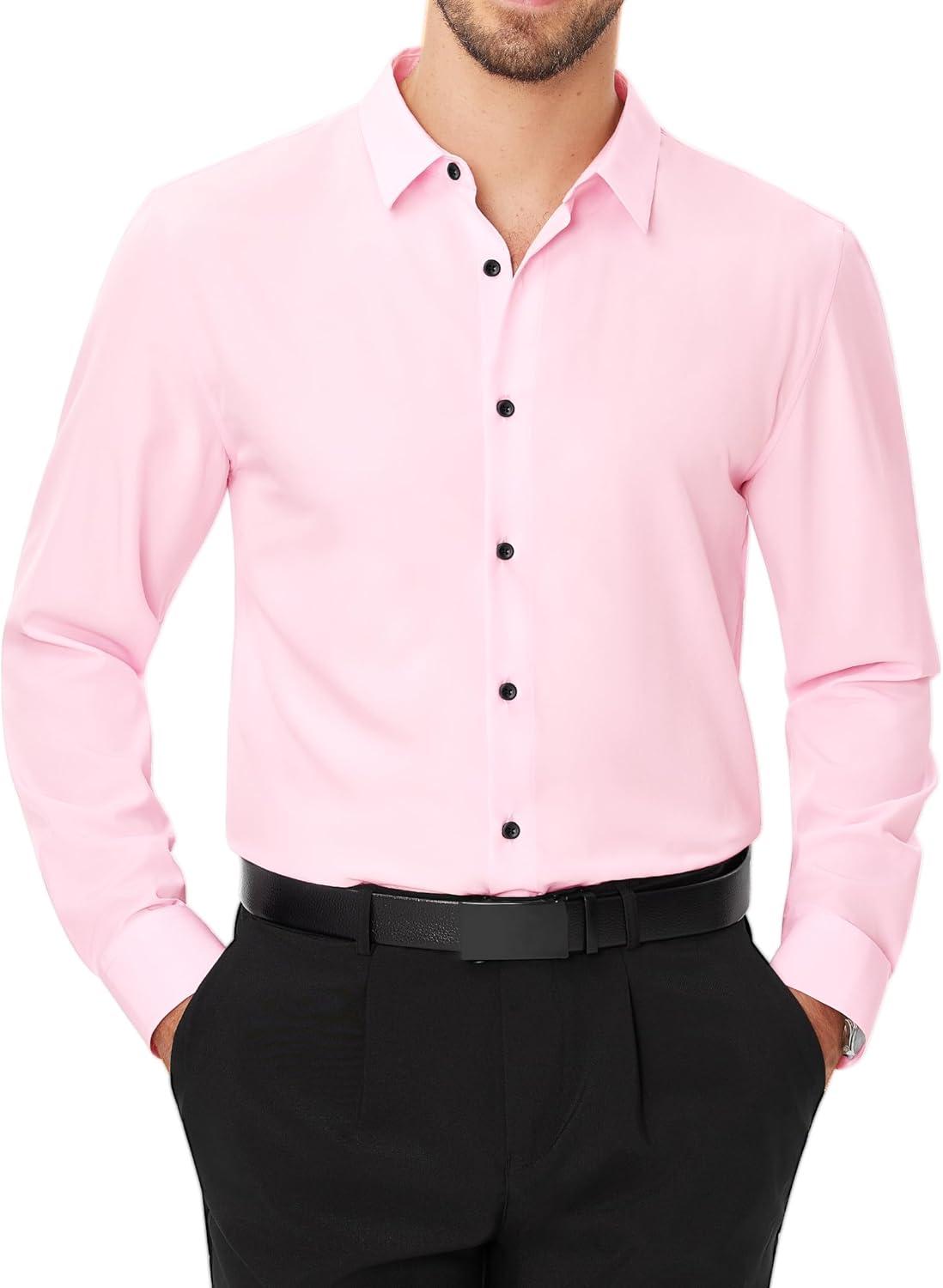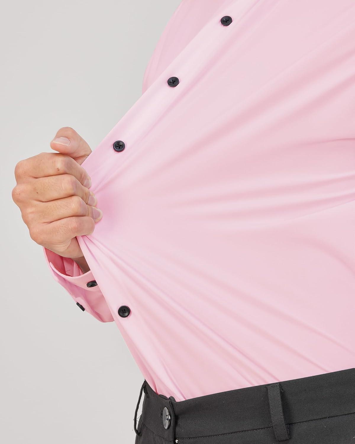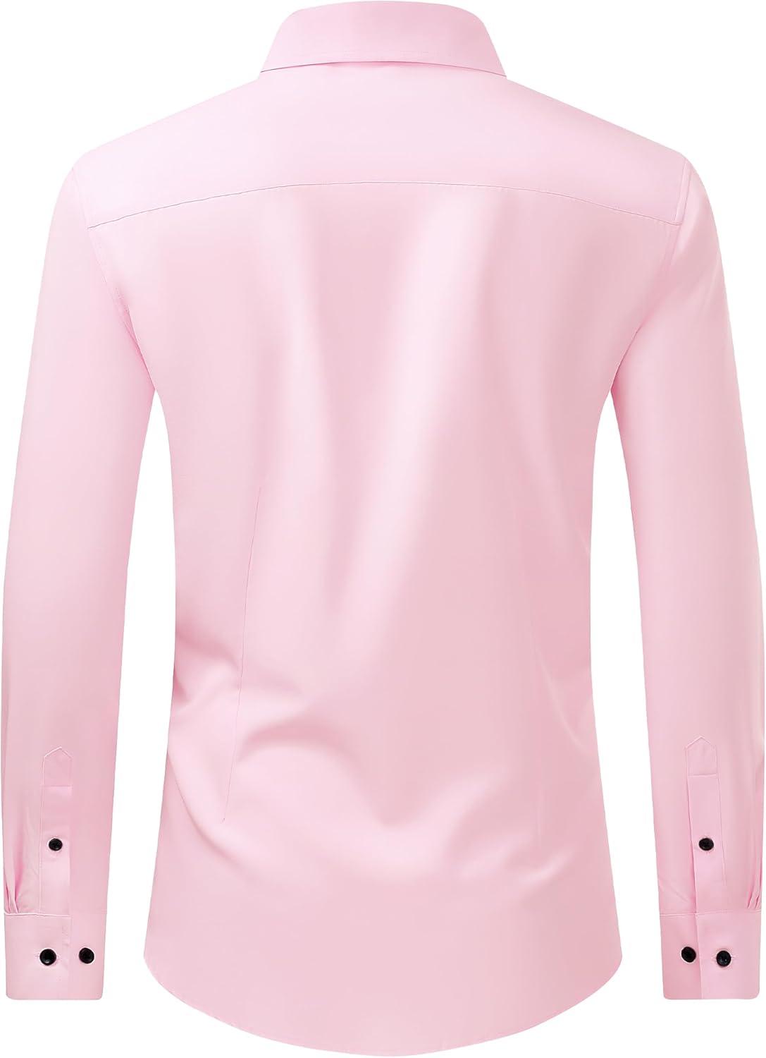 J.VER Men's Dress Shirts Stretch Long Sleeve Formal Shirt Solid Business Casual Button Down Shirts for Wedding Prom(Pink)