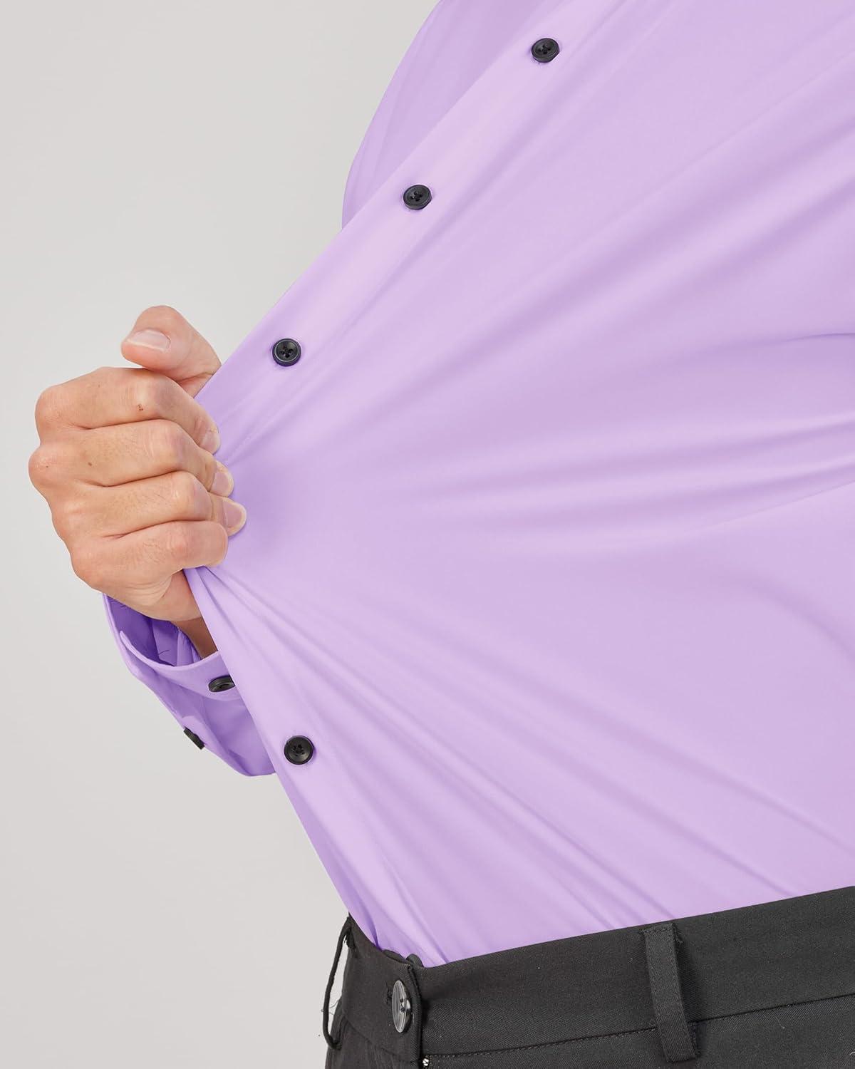J.VER Men's Dress Shirts Stretch Long Sleeve Formal Shirt Solid Business Casual Button Down Shirts for Wedding Prom(Purple)