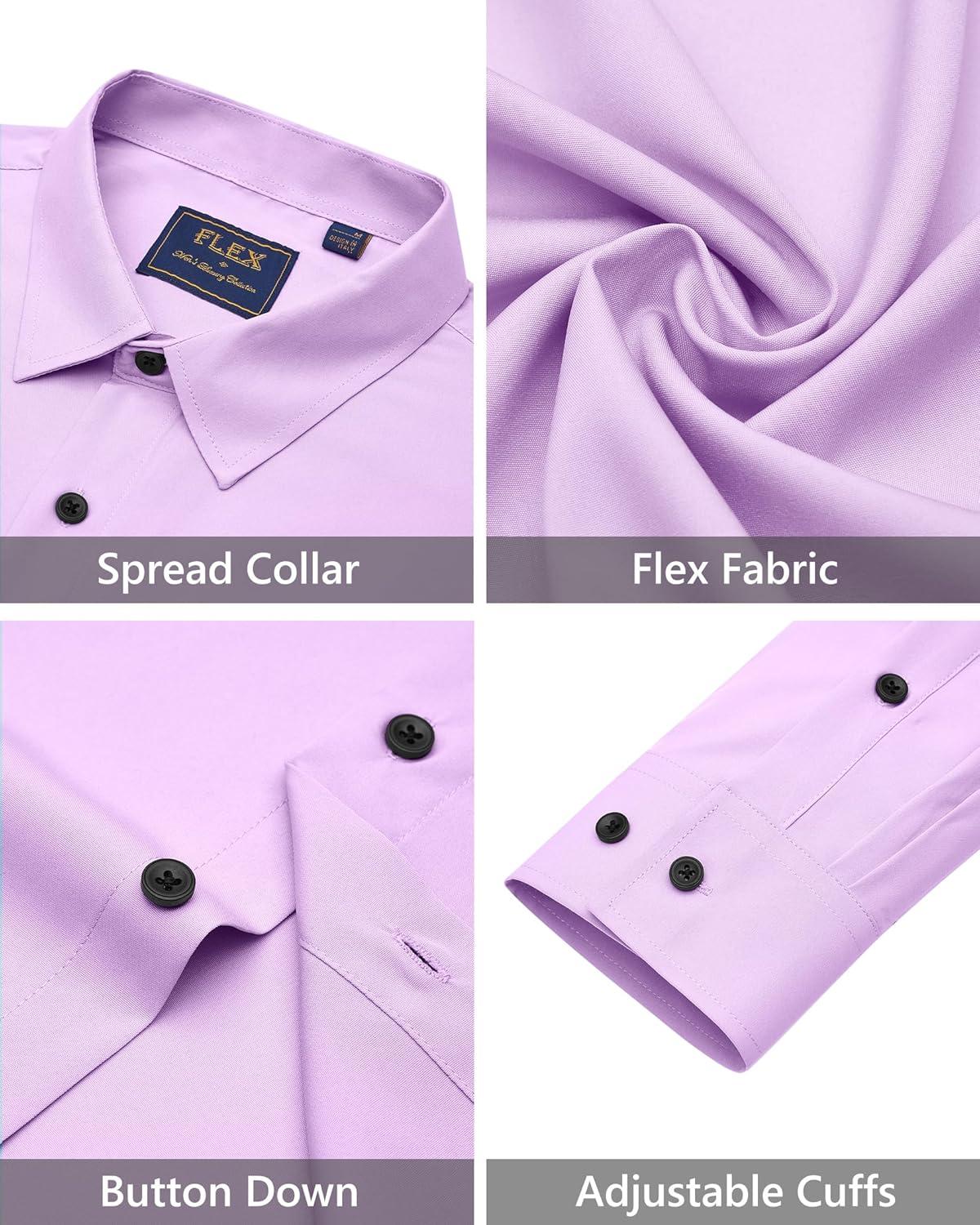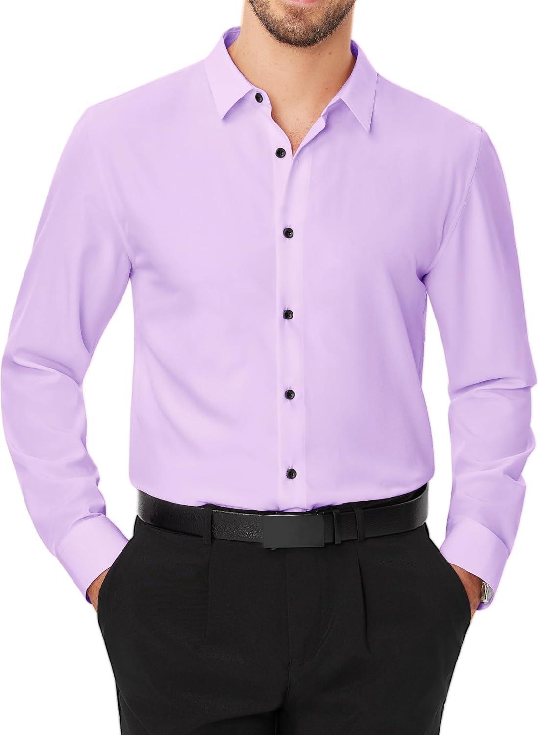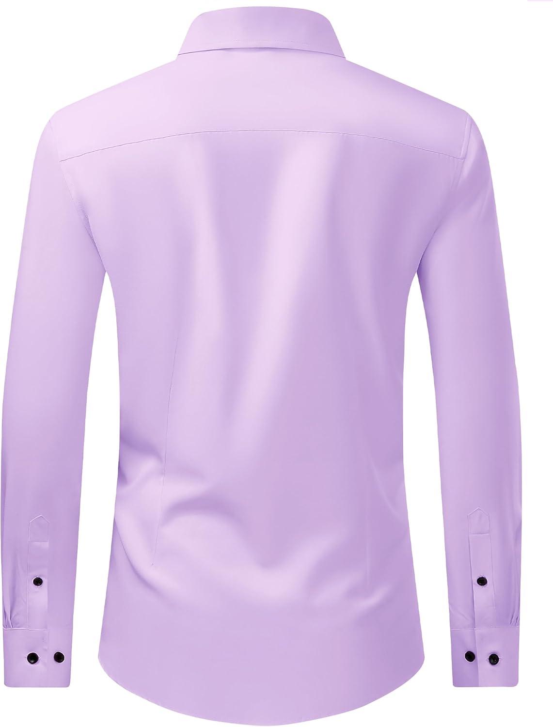 J.VER Men’s Dress Shirts Stretch Long Sleeve Formal Shirt Solid Business Casual Button Down Shirts for Wedding Prom(Purple)