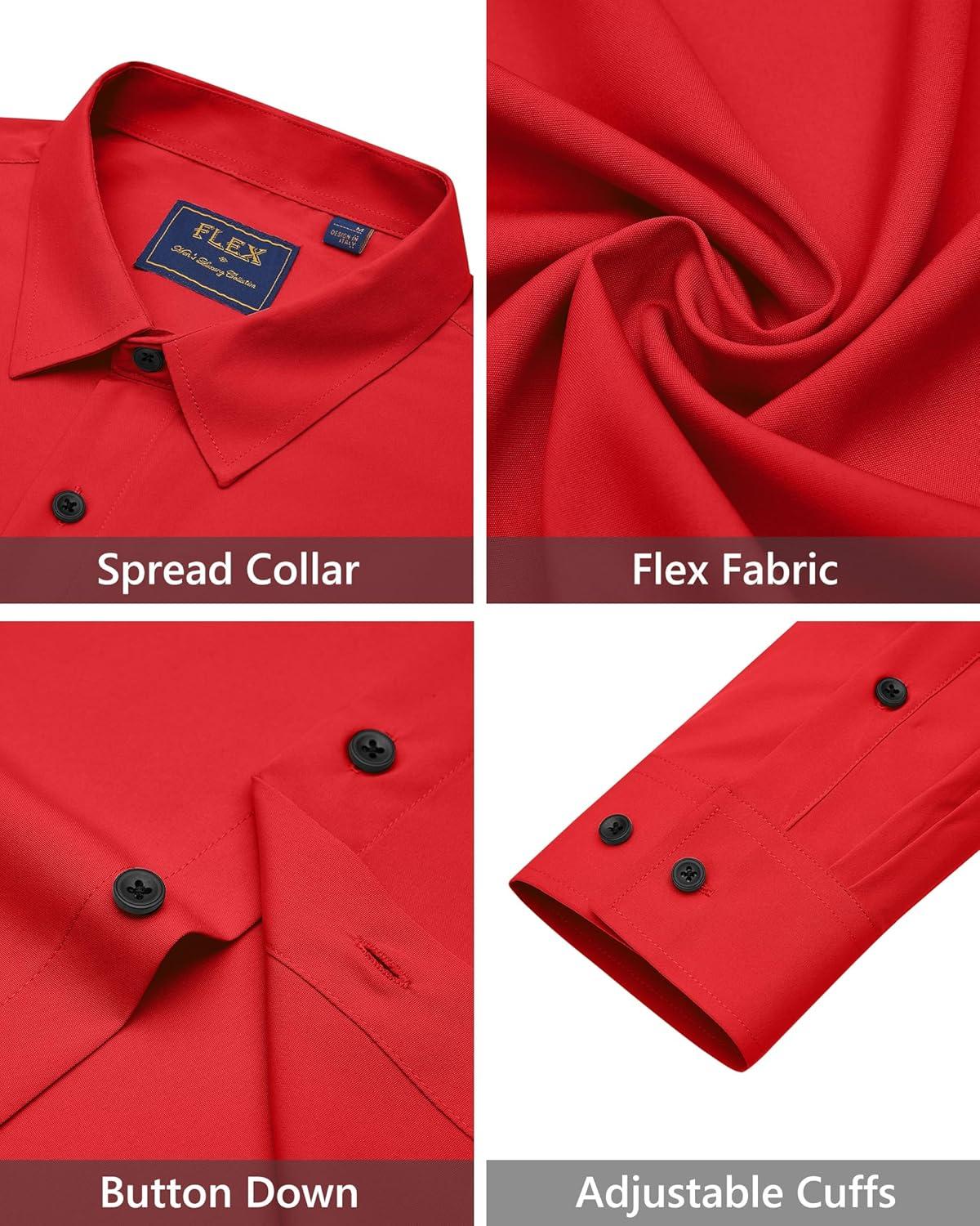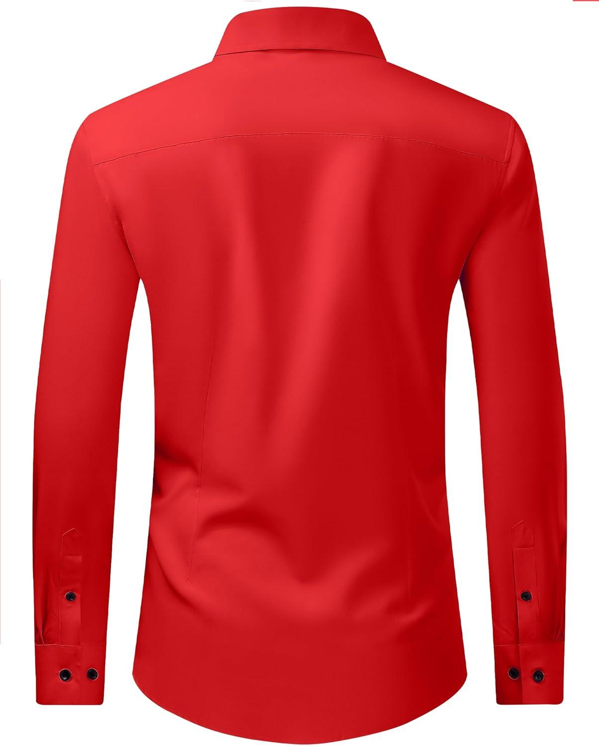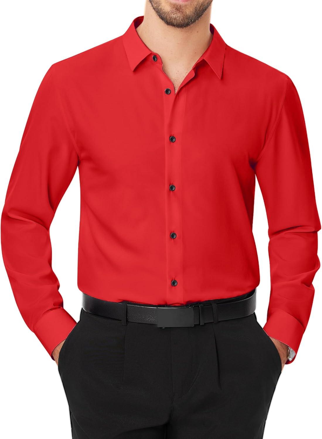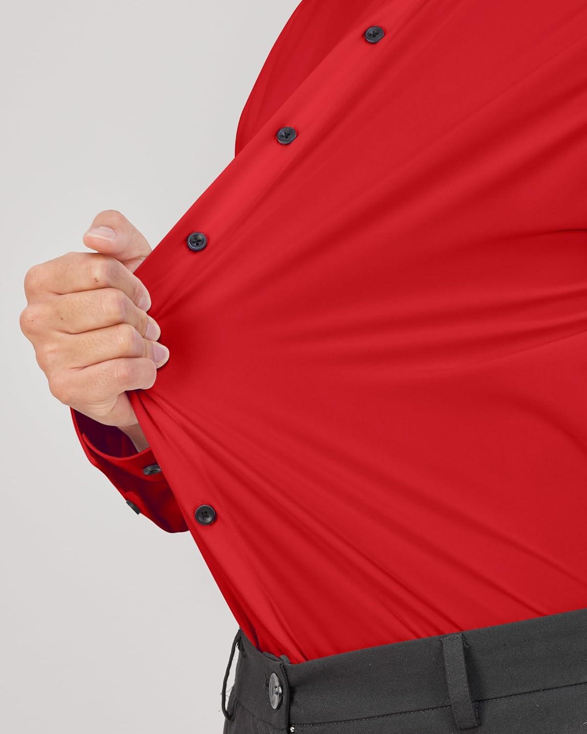 J.VER Men's Dress Shirts Stretch Long Sleeve Formal Shirt Solid Business Casual Button Down Shirts for Wedding Prom(Red)