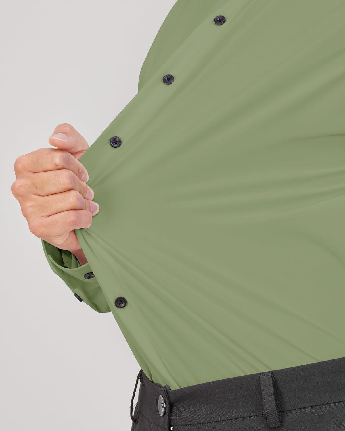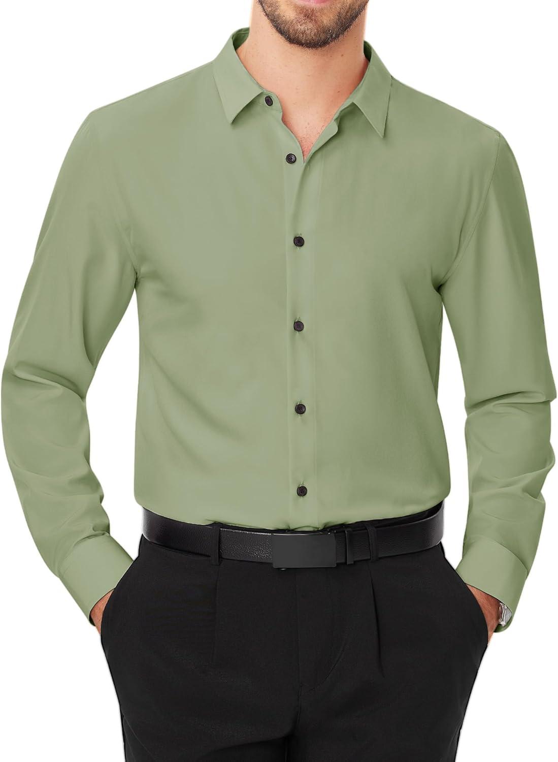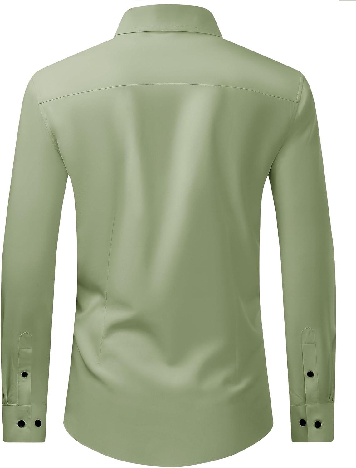J.VER Men's Dress Shirts Stretch Long Sleeve Formal Shirt Solid Business Casual Button Down Shirts for Wedding Prom(Sage Green)