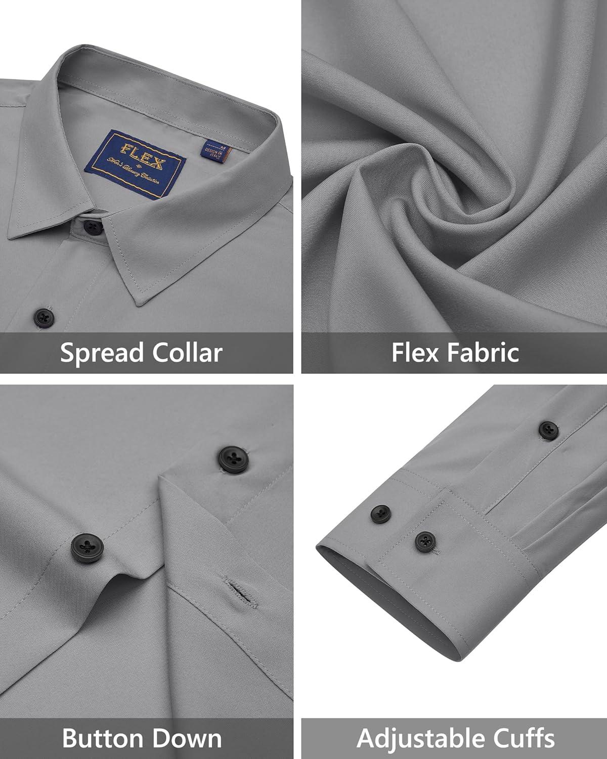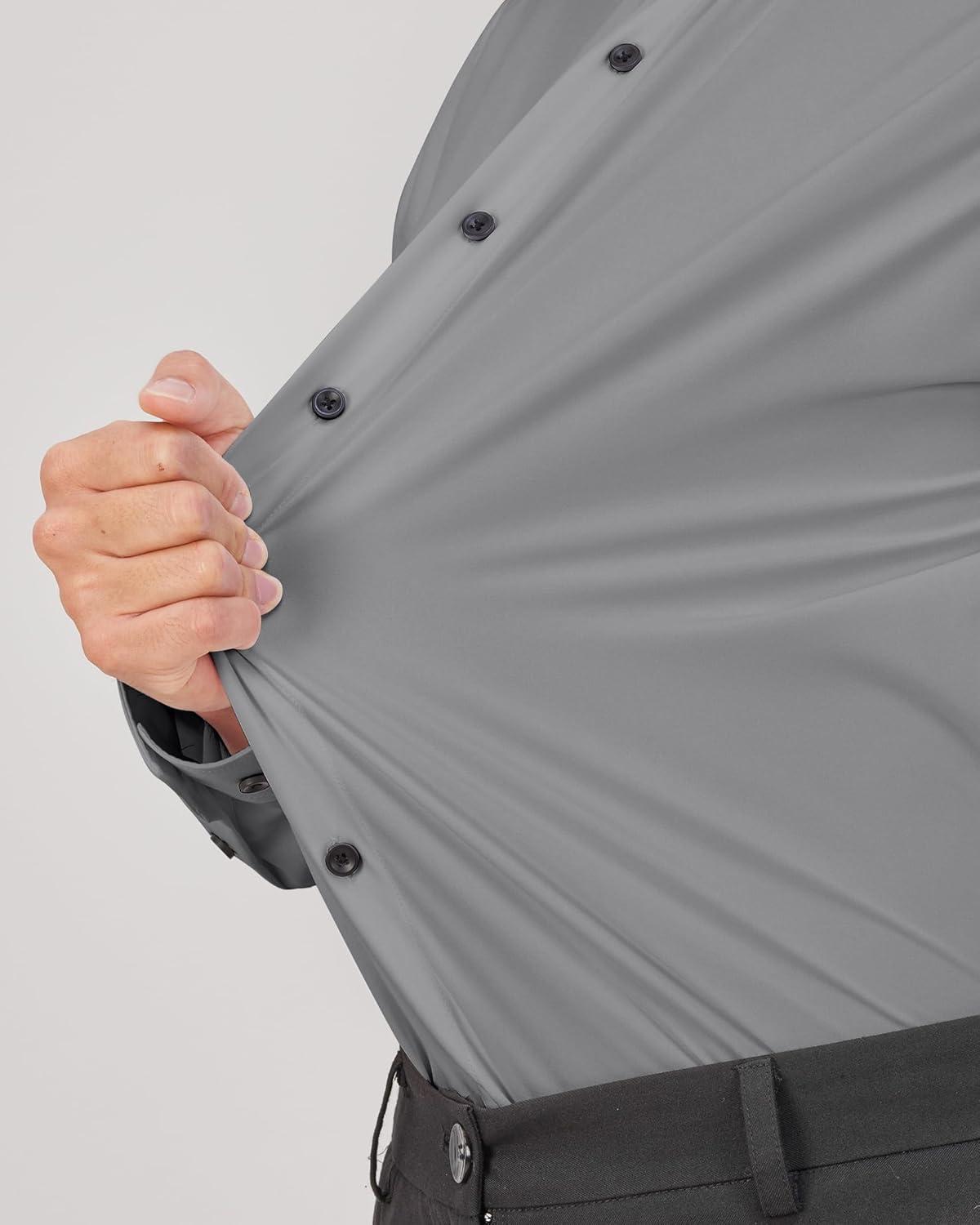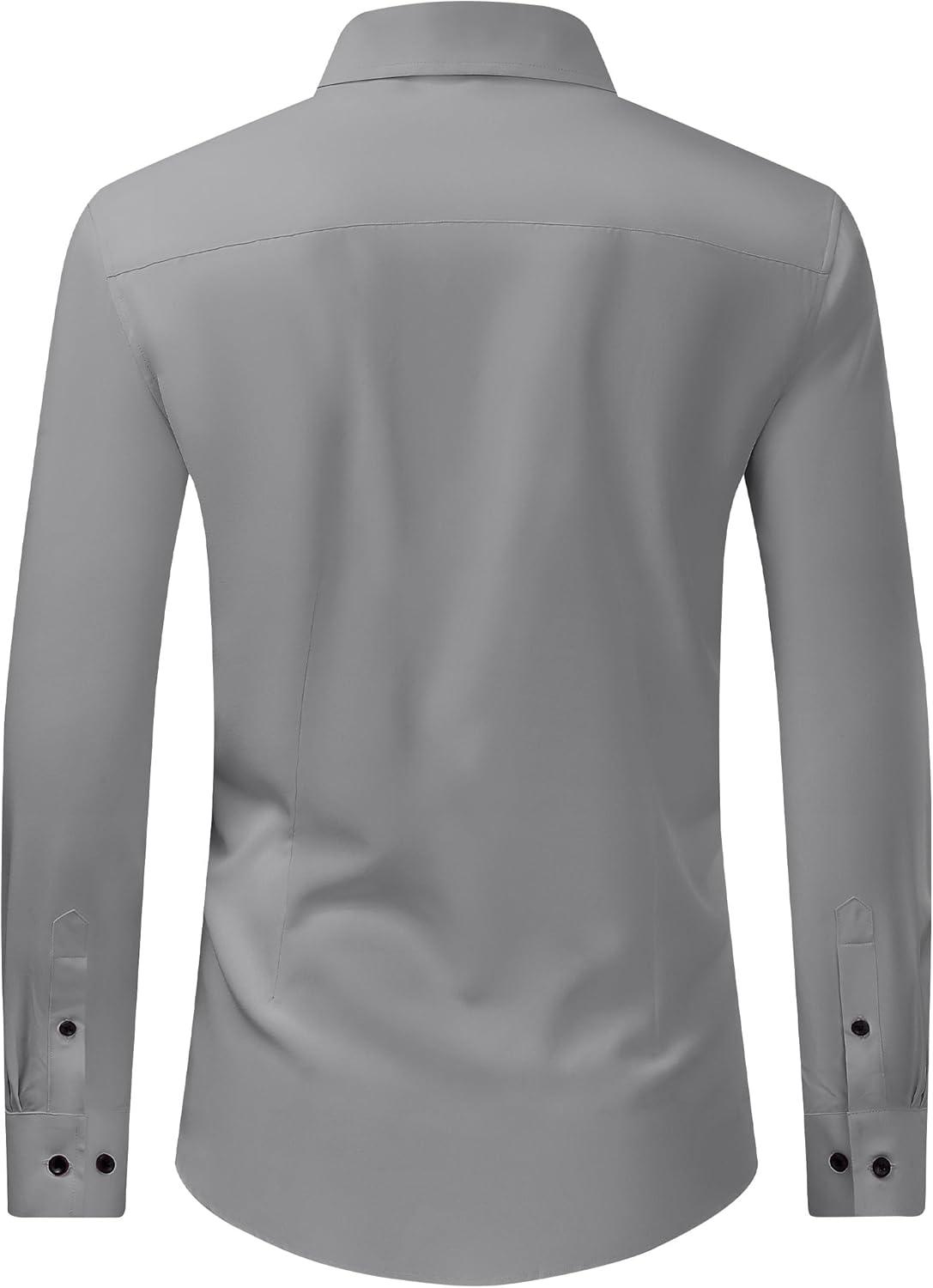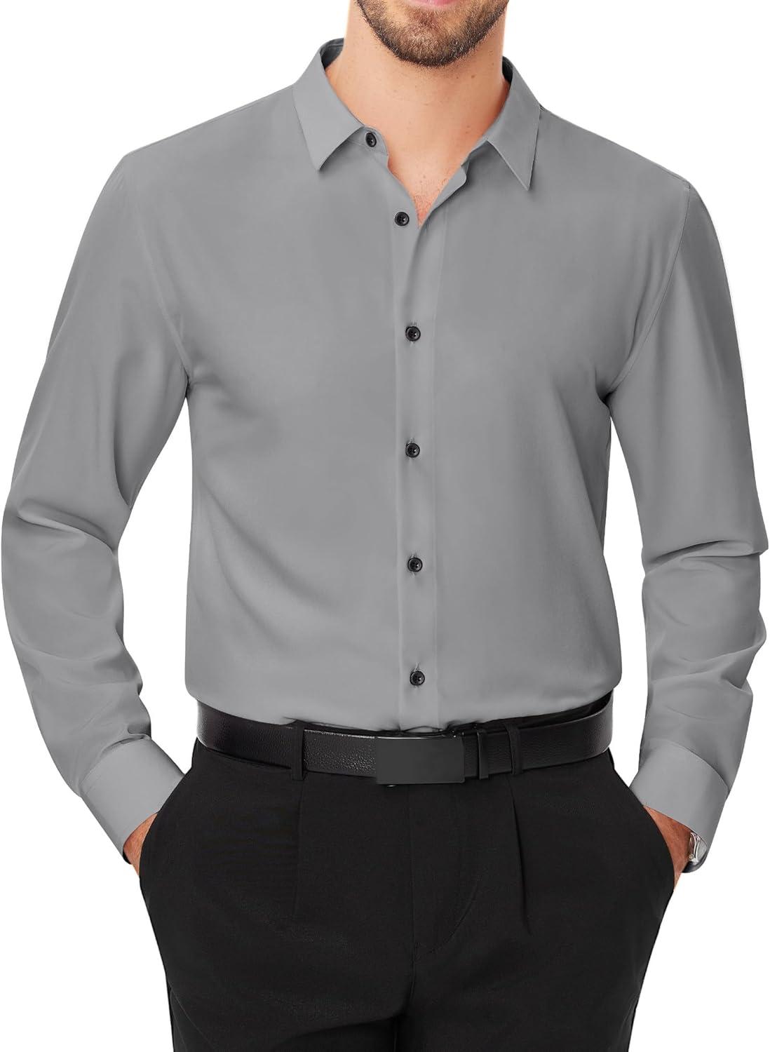 J.VER Men's Dress Shirts Stretch Long Sleeve Formal Shirt Solid Business Casual Button Down Shirts for Wedding Prom(Silver Grey)