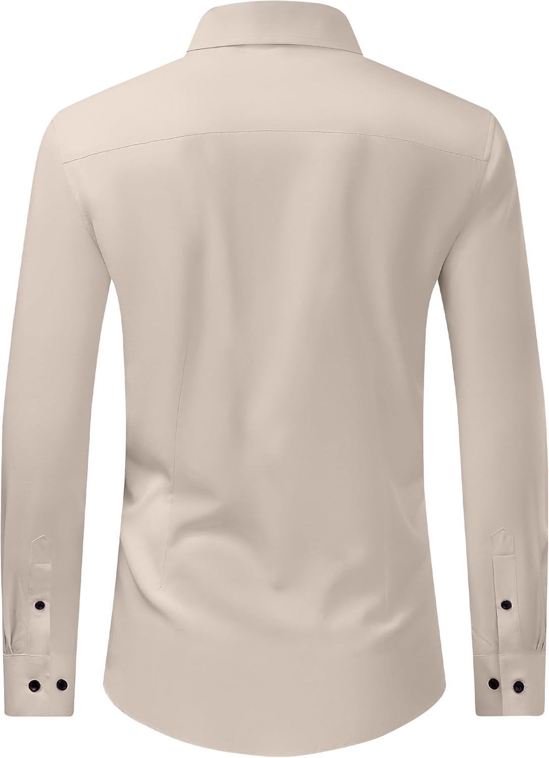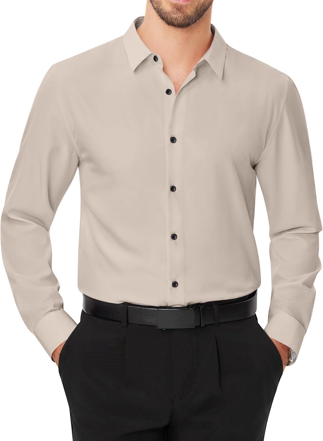 J.VER Men's Dress Shirts Stretch Long Sleeve Formal Shirt Solid Business Casual Button Down Shirts for Wedding Prom(Tan)