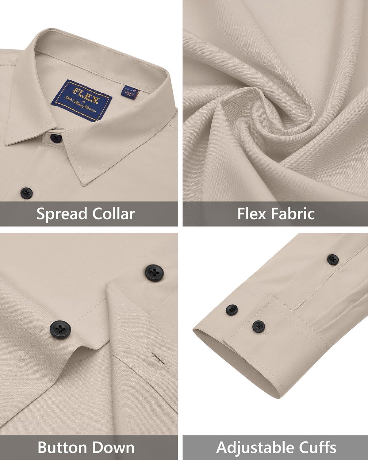 J.VER Men’s Dress Shirts Stretch Long Sleeve Formal Shirt Solid Business Casual Button Down Shirts for Wedding Prom(Tan)