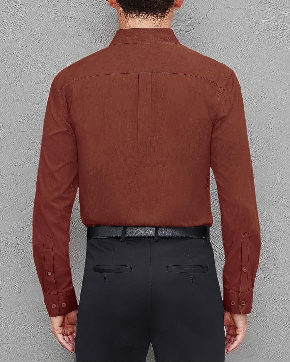 J.VER Men’s Dress Shirts Stretch Stain Shield Long Sleeve Solid Formal Shirt Business Casual Button Down Shirts(Burnt Orange)