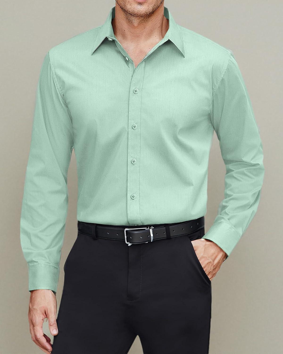 J.VER Men's Dress Shirts Stretch Stain Shield Long Sleeve Solid Formal Shirt Business Casual Button Down Shirts(Light Green)