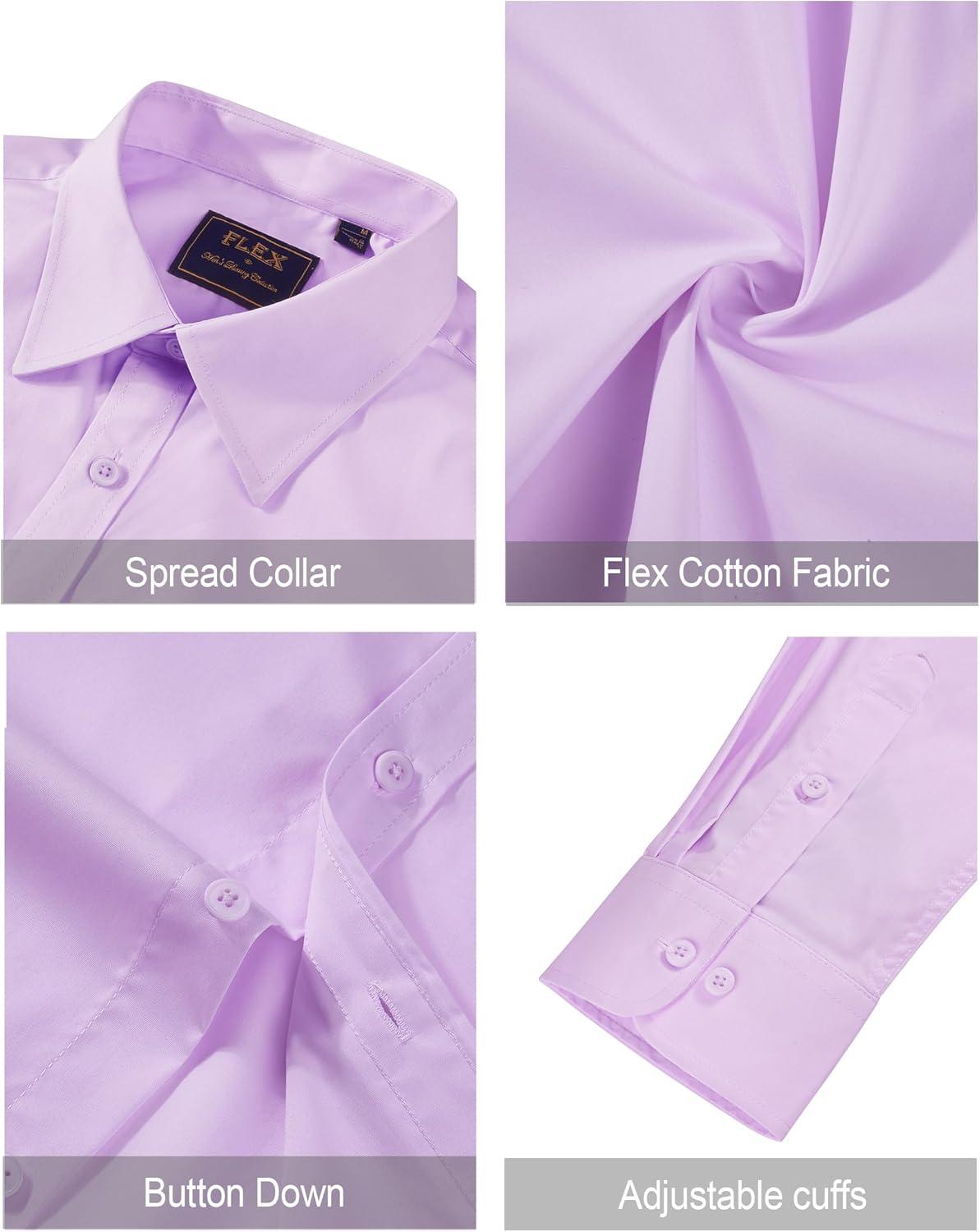 J.VER Men’s Dress Shirts Stretch Stain Shield Long Sleeve Solid Formal Shirt Business Casual Button Down Shirts(Light Purple)