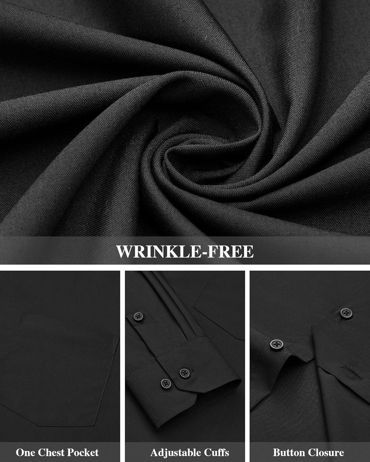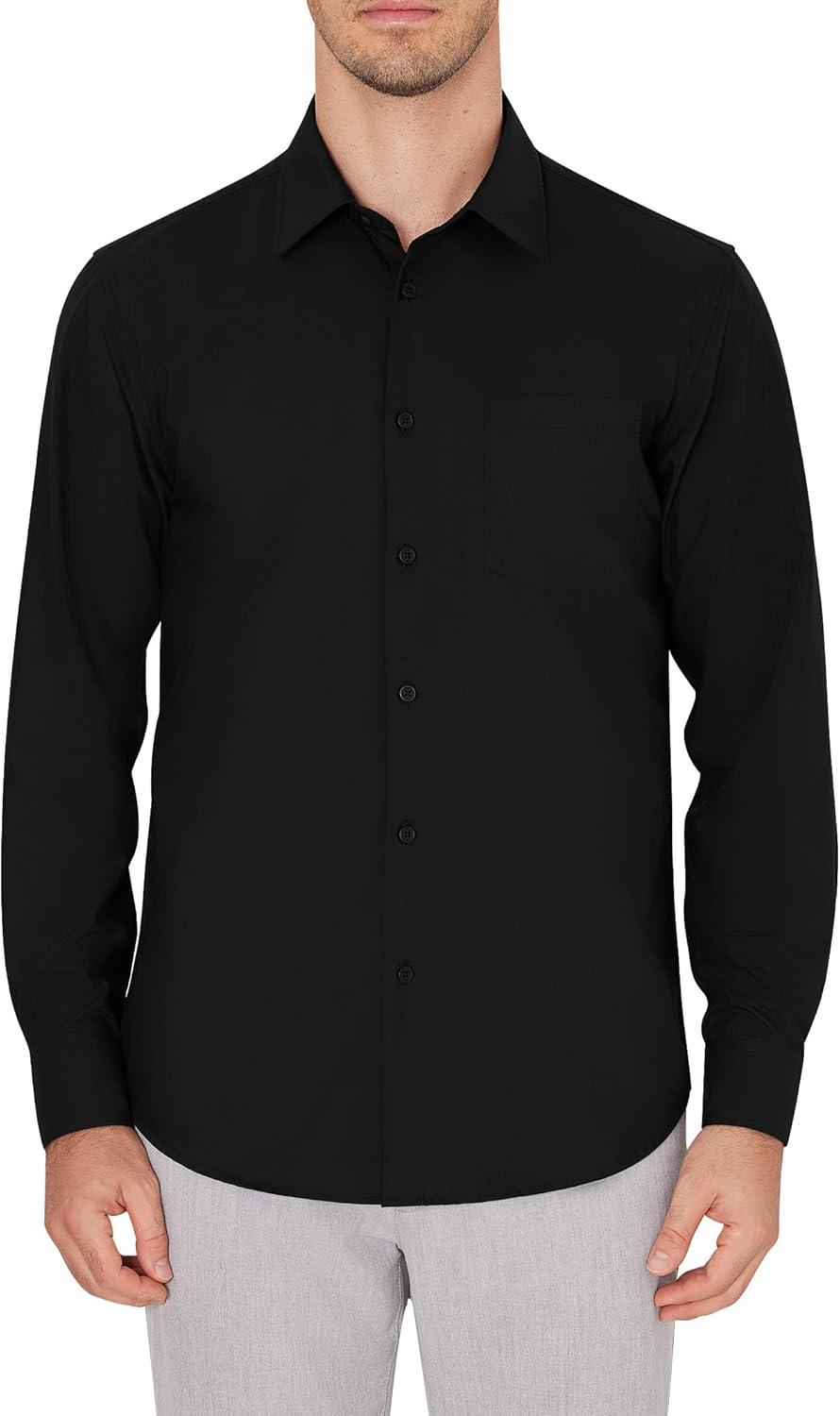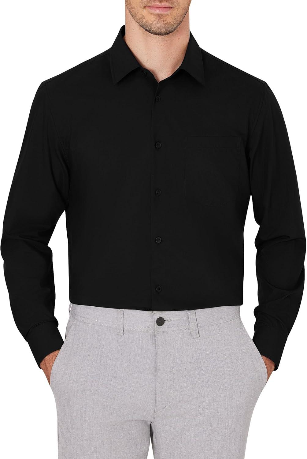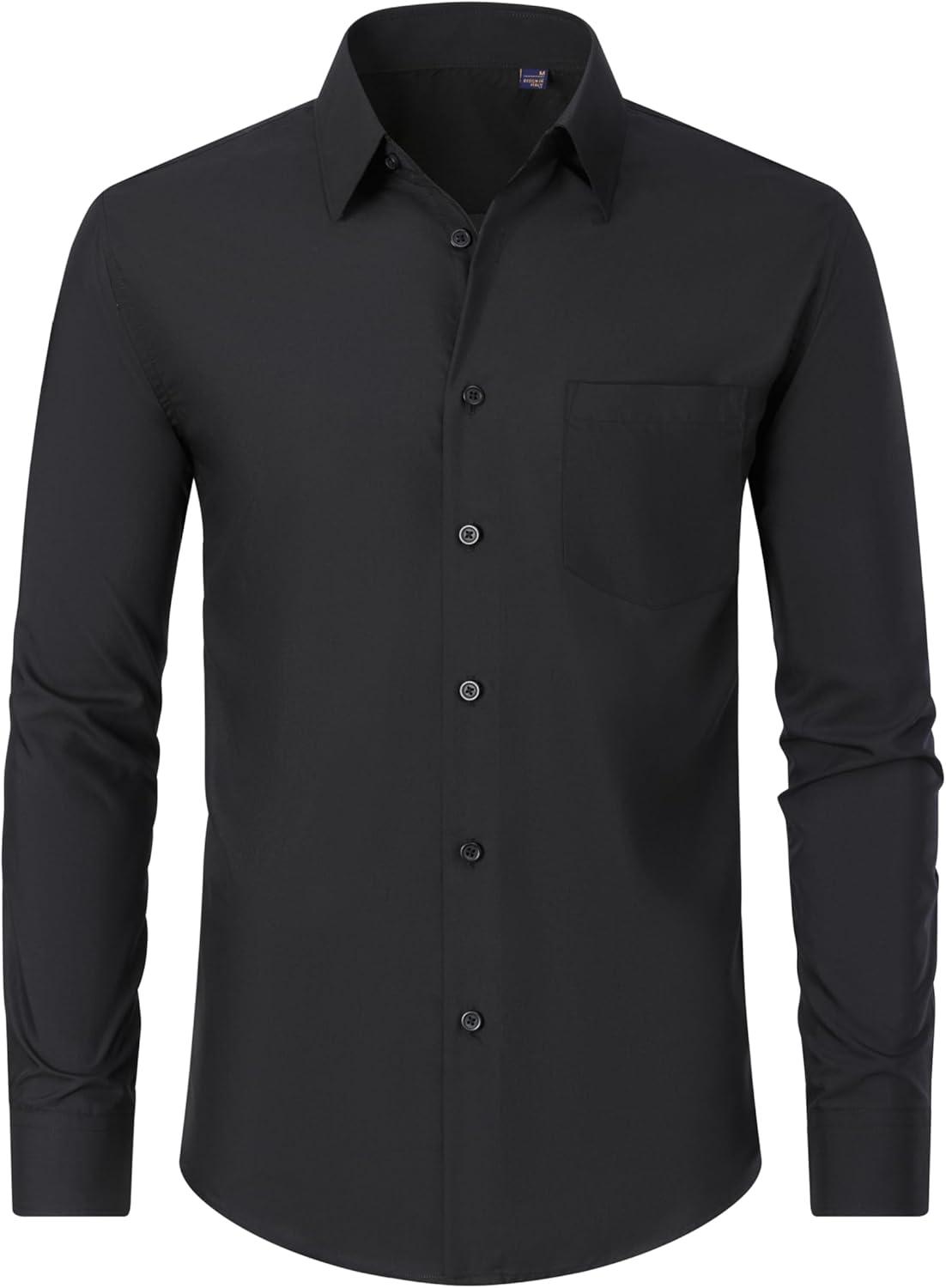 J.VER Men’s Dress Shirts Wrinkle Free Long Sleeve Formal Shirt Solid Business Casual Button Down Shirts for Wedding Prom(Black)