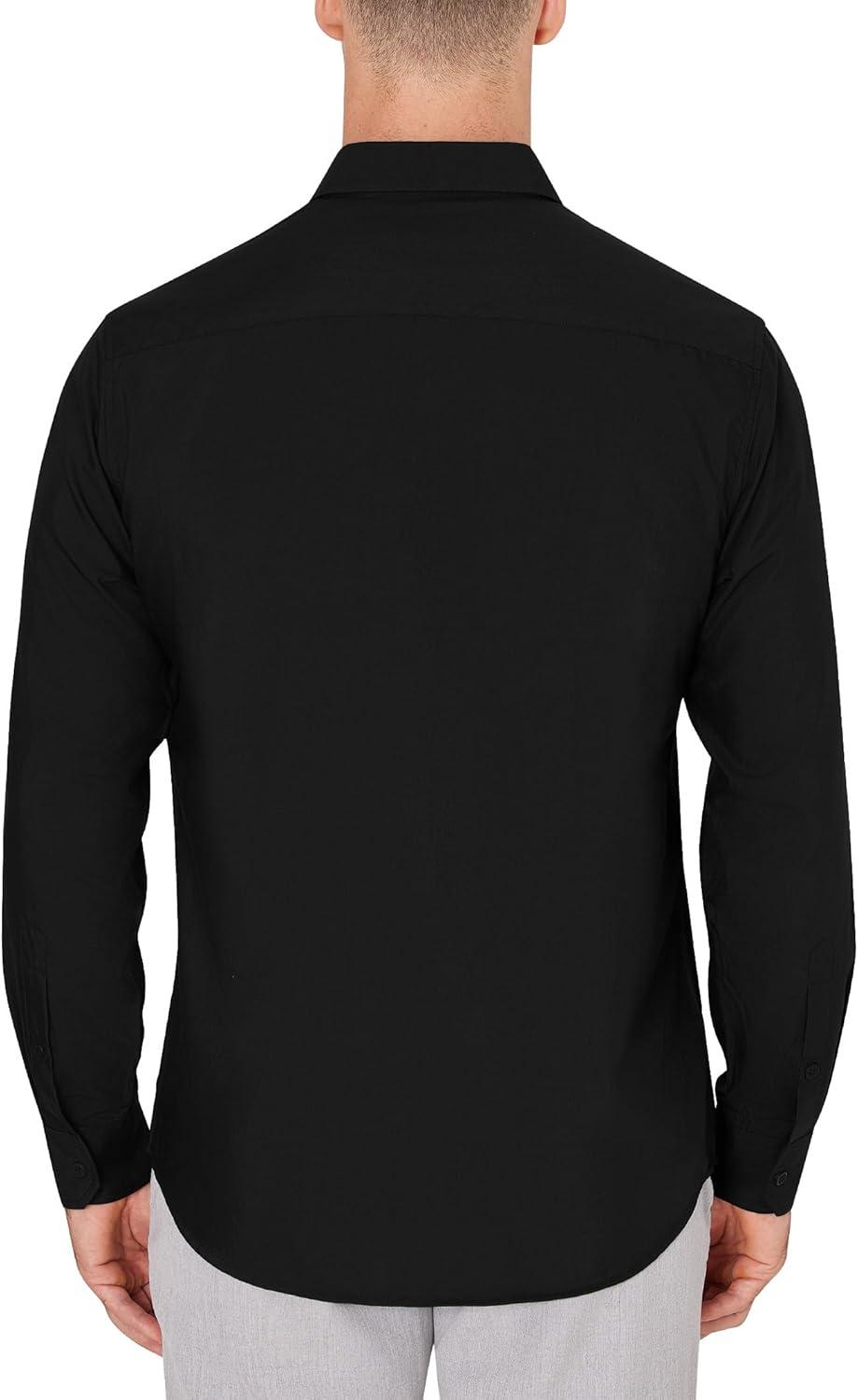 J.VER Men's Dress Shirts Wrinkle Free Long Sleeve Formal Shirt Solid Business Casual Button Down Shirts for Wedding Prom(Black)