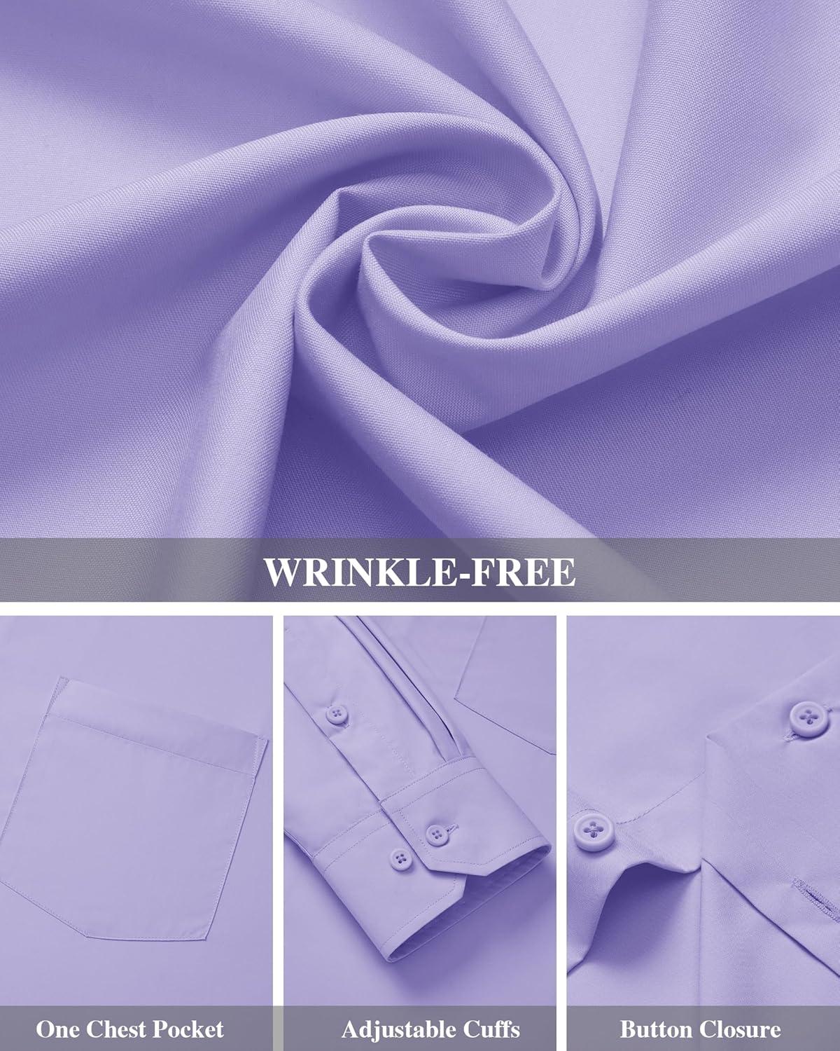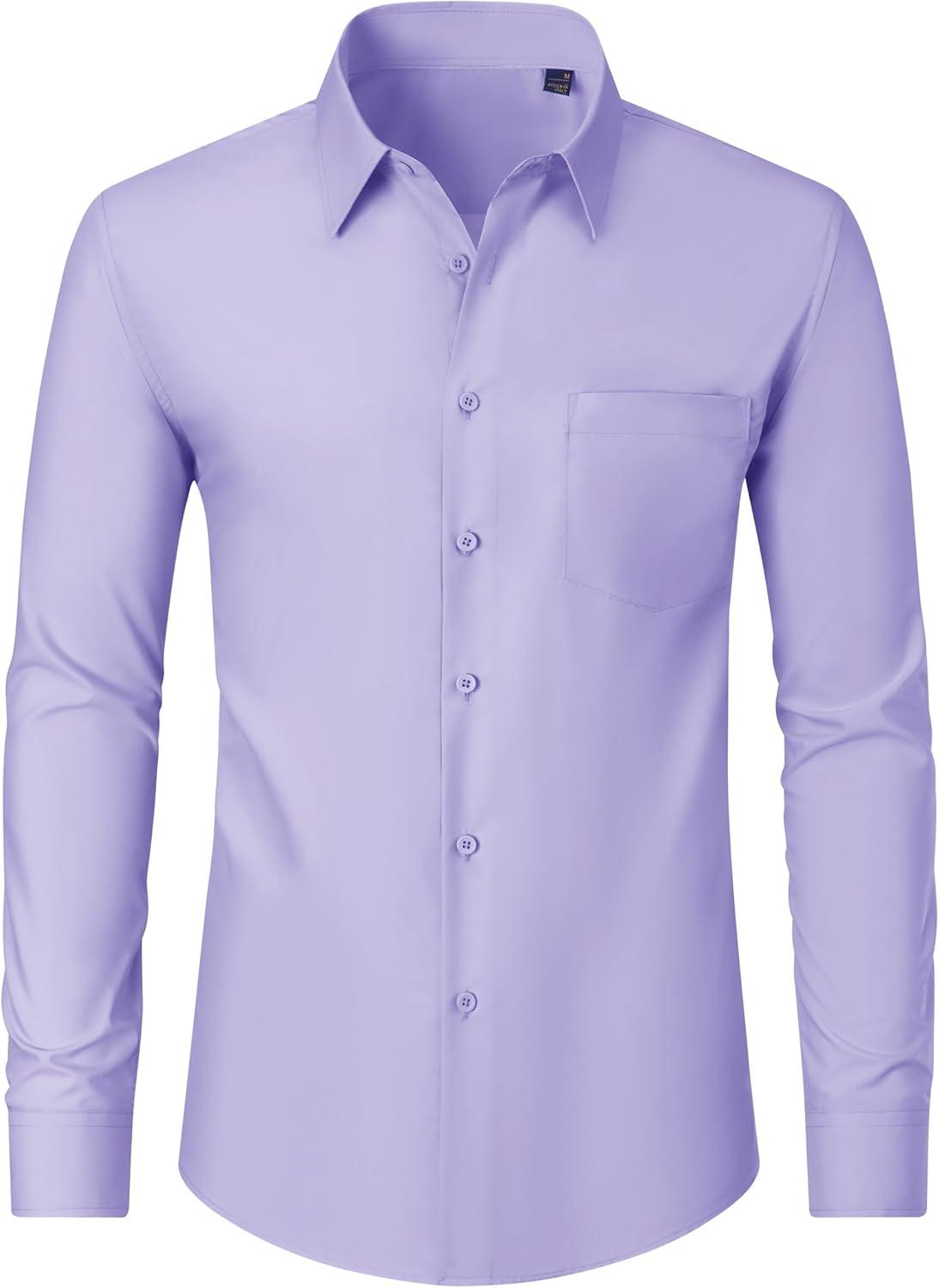 J.VER Men's Dress Shirts Wrinkle Free Long Sleeve Formal Shirt Solid Business Casual Button Down Shirts for Wedding Prom(Lilac Purple)