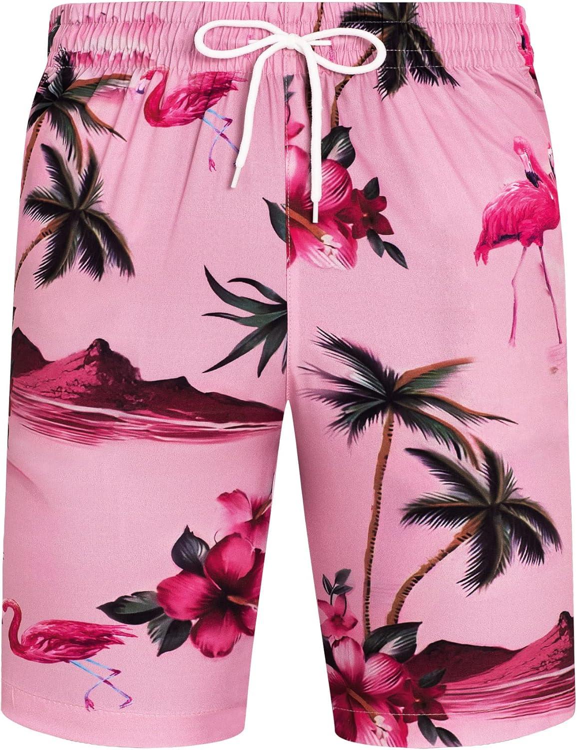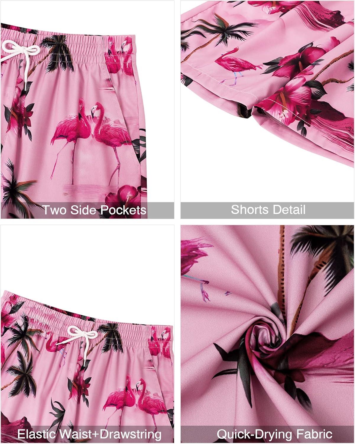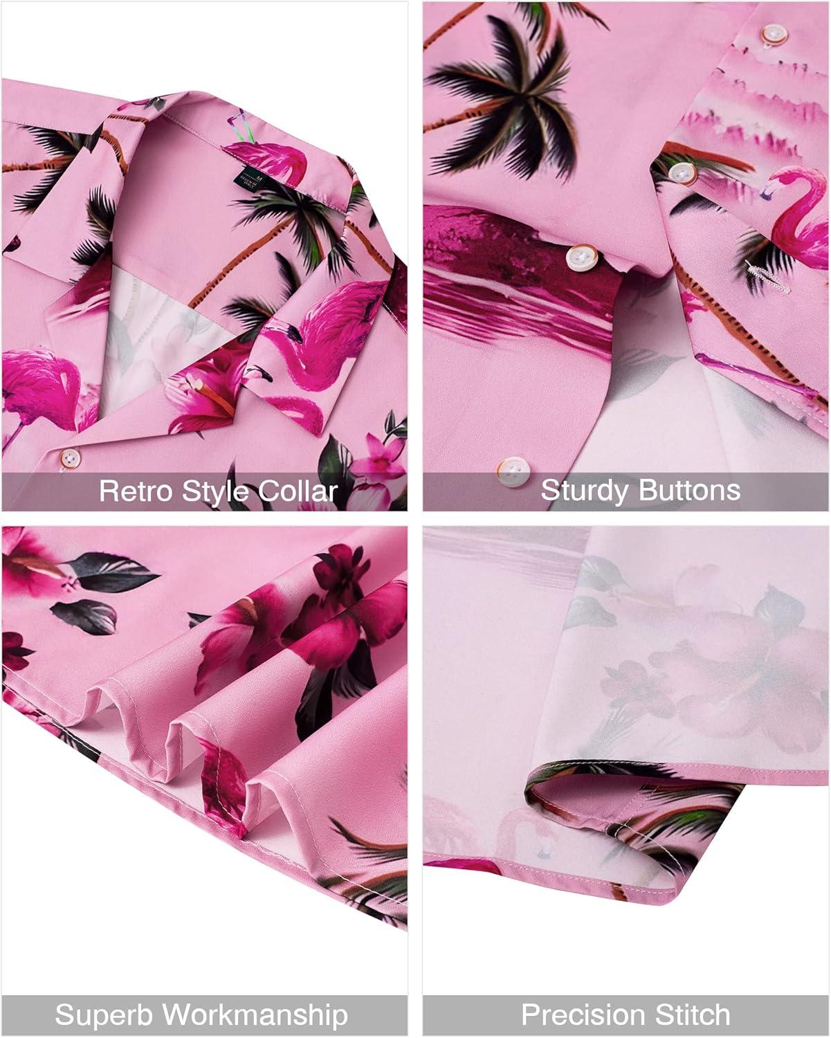 J.VER Men’s Hawaiian Shirts Casual Button Down Short Sleeve Shirts Set Printed Shorts Beach Tropical Hawaii Suits(New-rose Pink-flamingo)