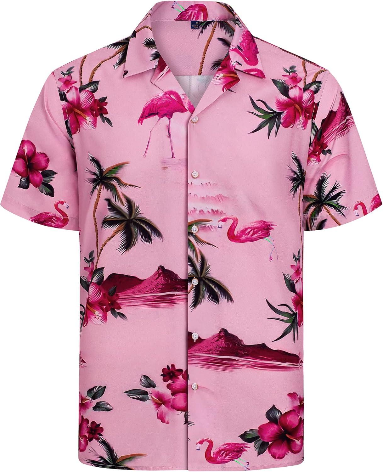 J.VER Men's Hawaiian Shirts Casual Button Down Short Sleeve Shirts Set Printed Shorts Beach Tropical Hawaii Suits(New-rose Pink-flamingo)