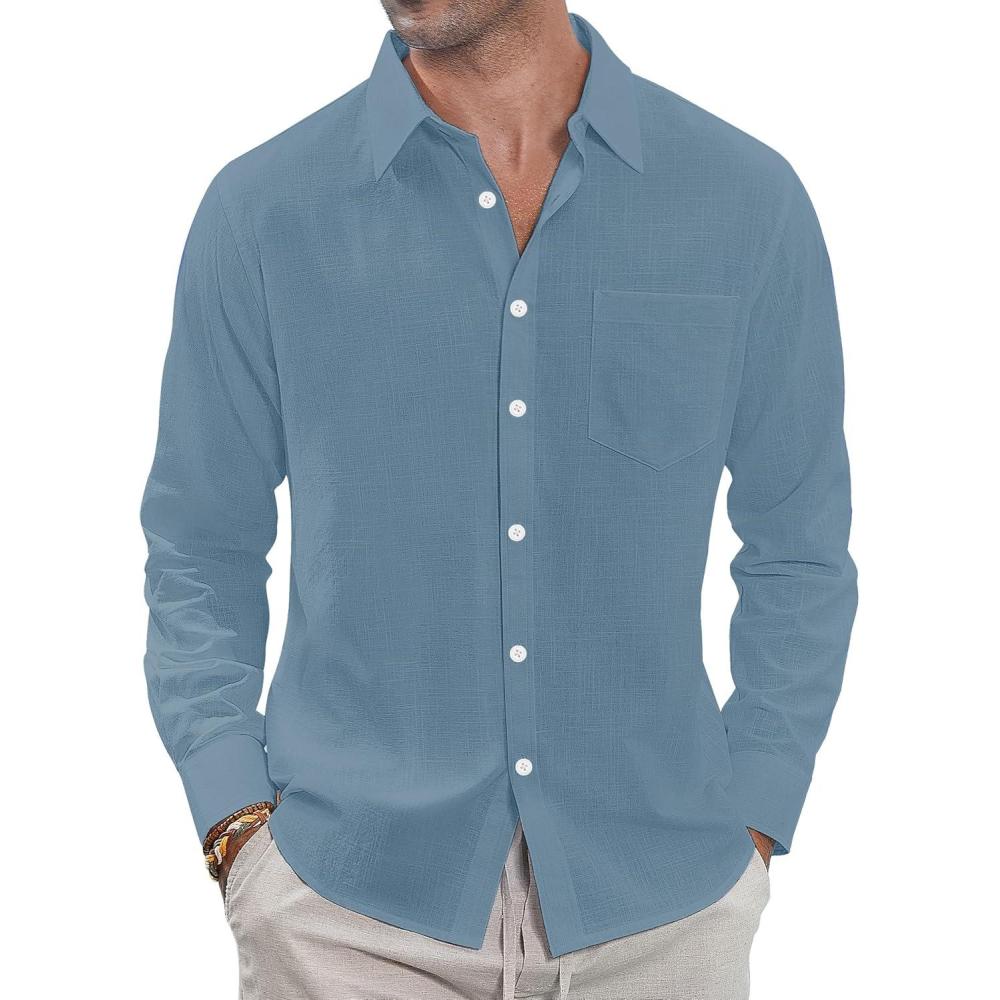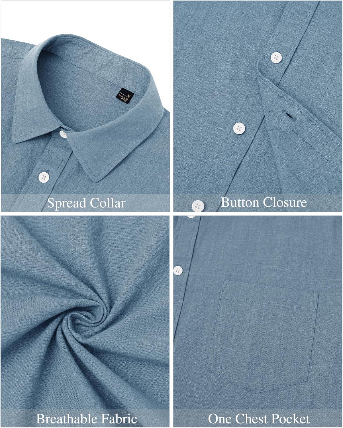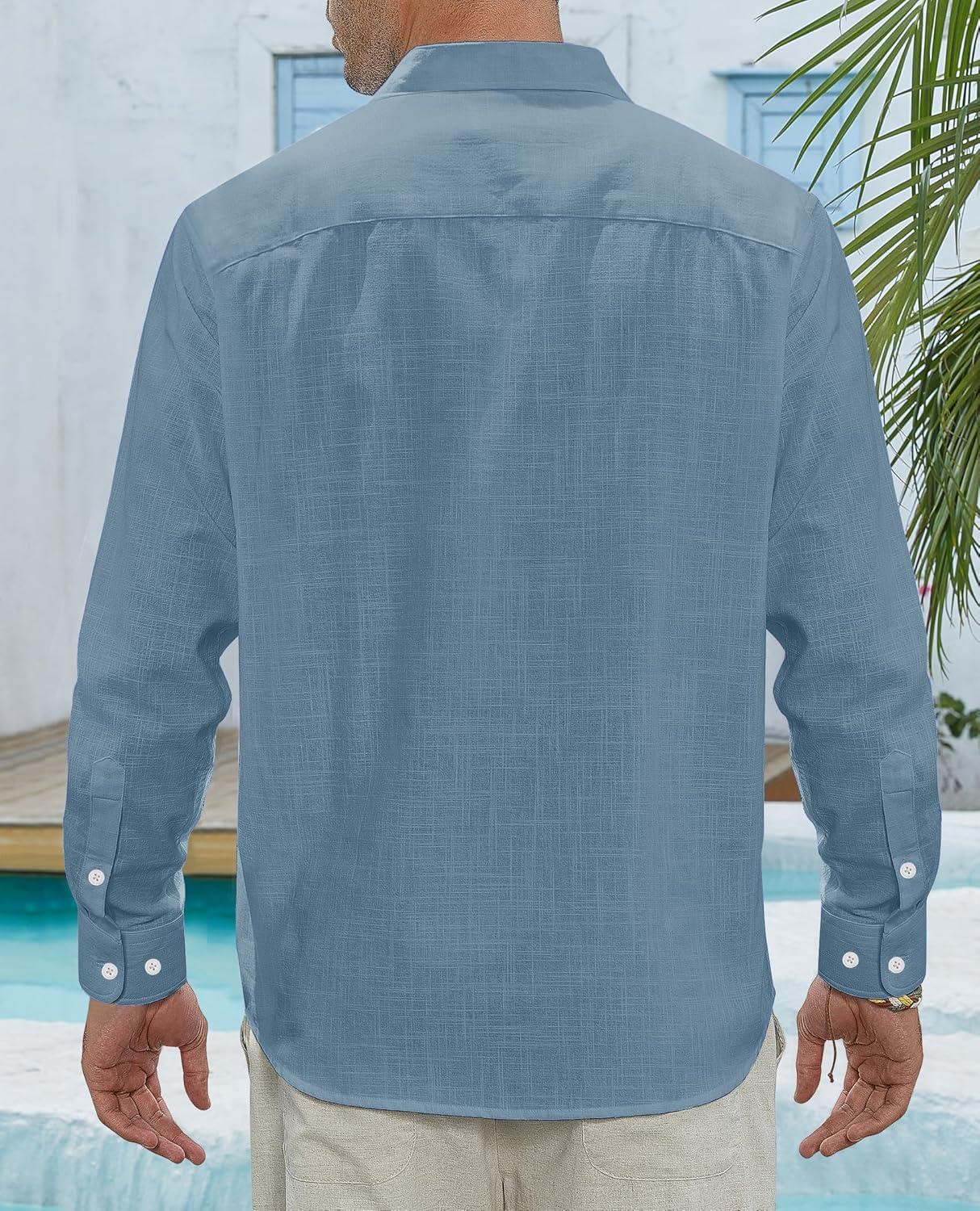 J.VER Men's Linen Shirts Casual Button Down Long Sleeve Shirt Solid Spread Collar Summer Beach Shirts with Pocket(Airy Blue)