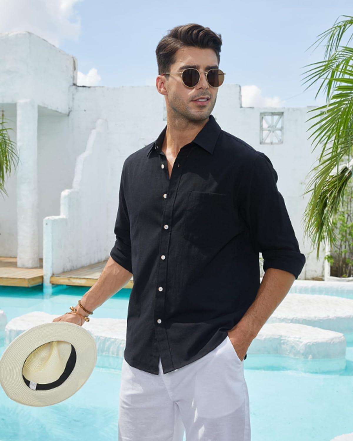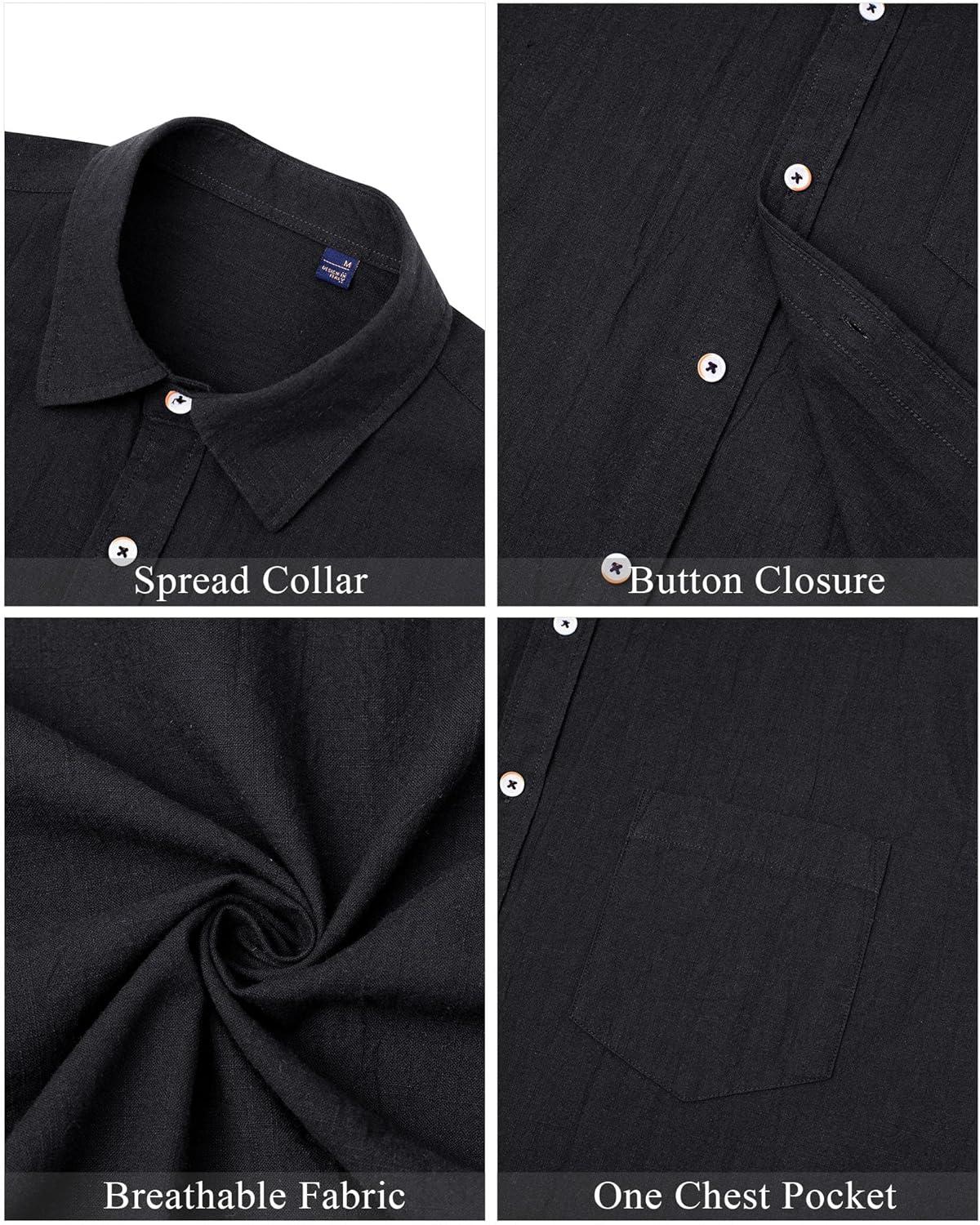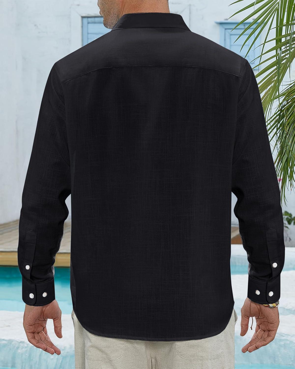 J.VER Men's Linen Shirts Casual Button Down Long Sleeve Shirt Solid Spread Collar Summer Beach Shirts with Pocket(Black)