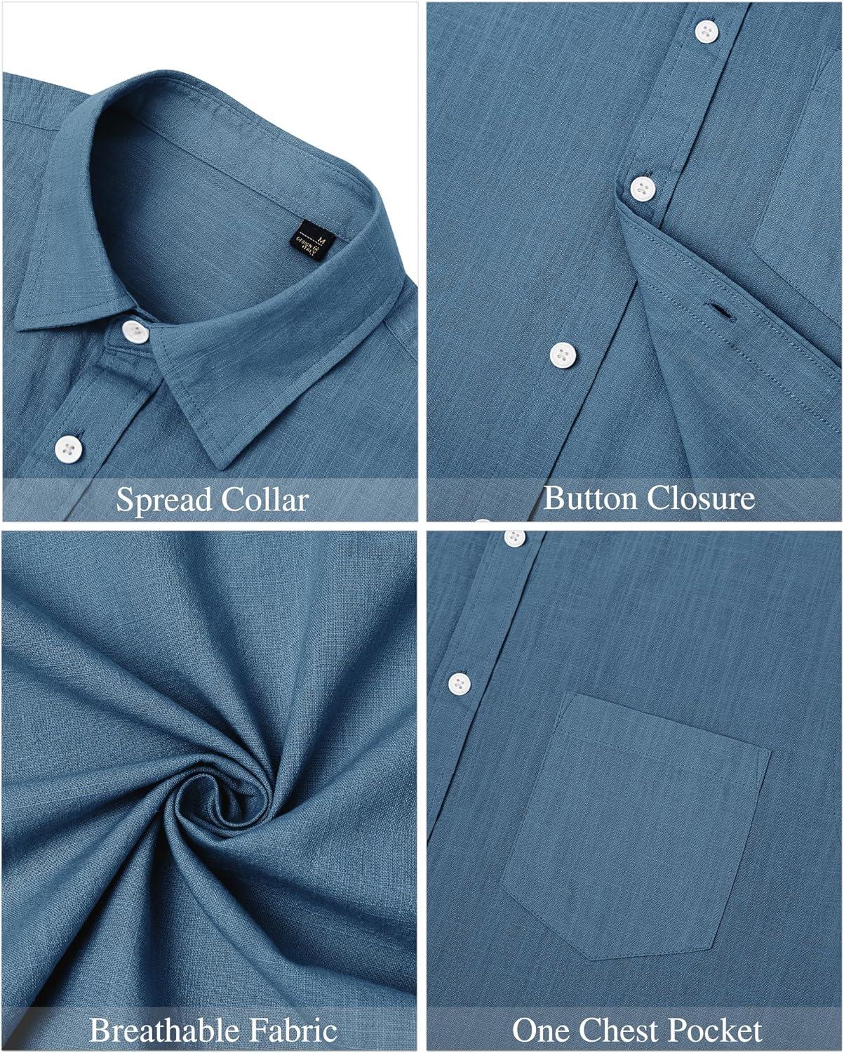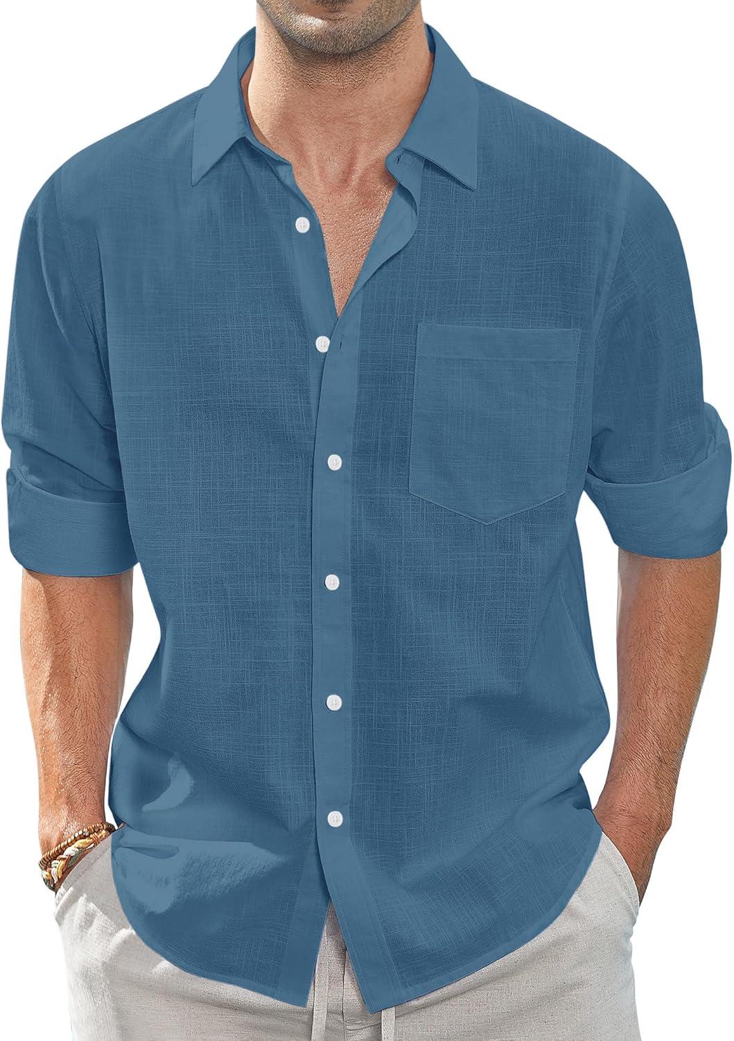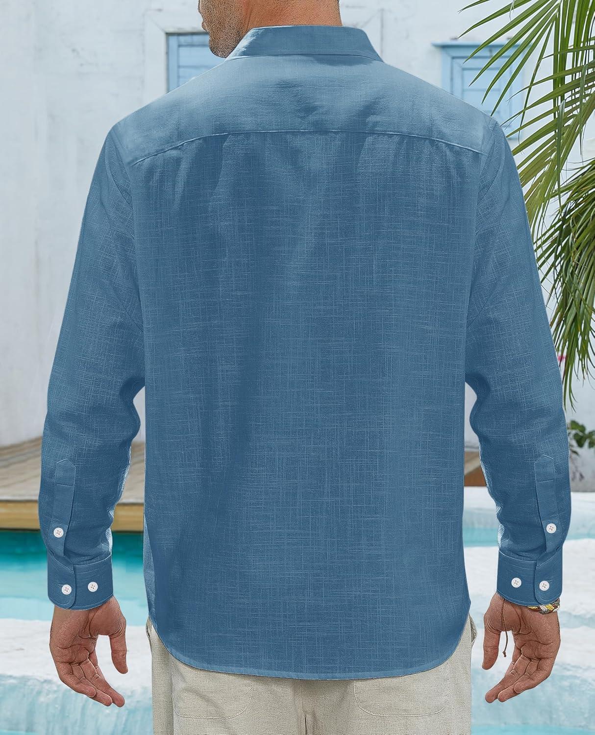 J.VER Men’s Linen Shirts Casual Button Down Long Sleeve Shirt Solid Spread Collar Summer Beach Shirts with Pocket(Denim Blue)