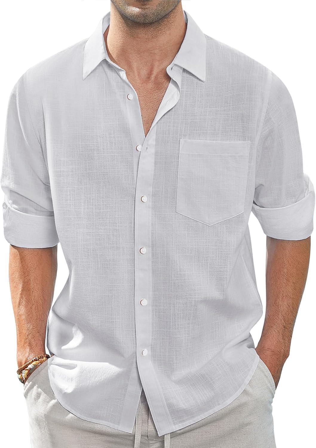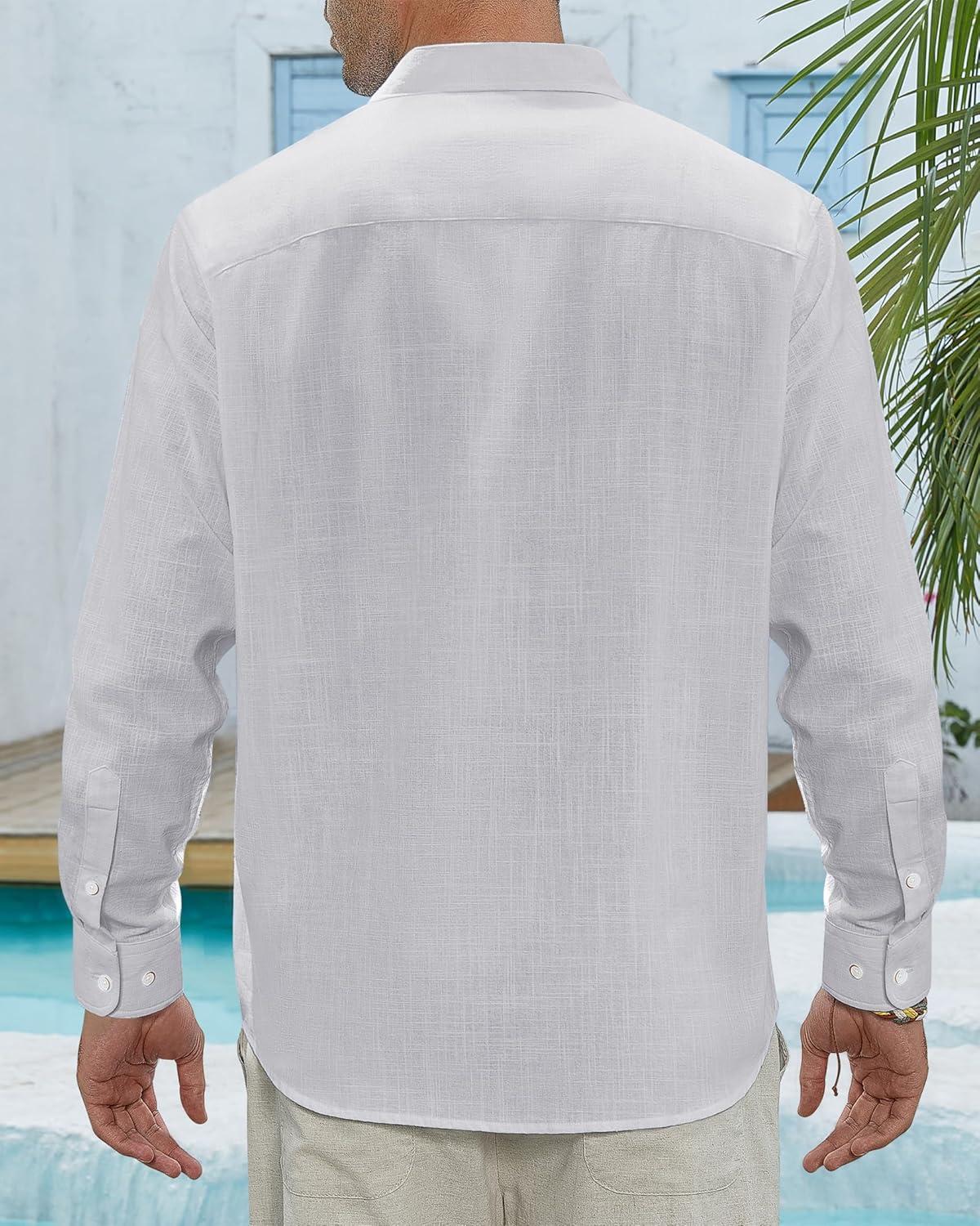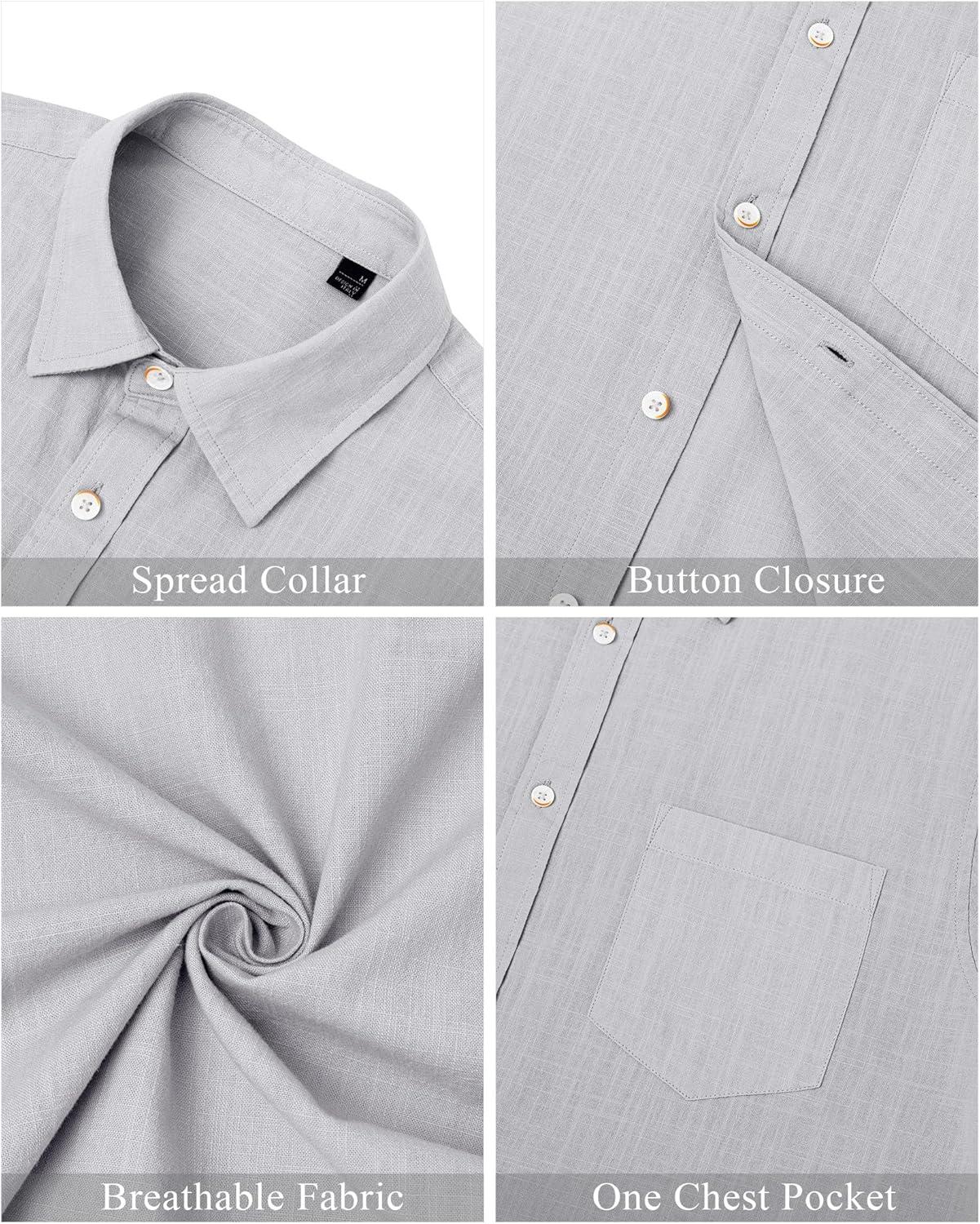 J.VER Men's Linen Shirts Casual Button Down Long Sleeve Shirt Solid Spread Collar Summer Beach Shirts with Pocket(Light Grey)
