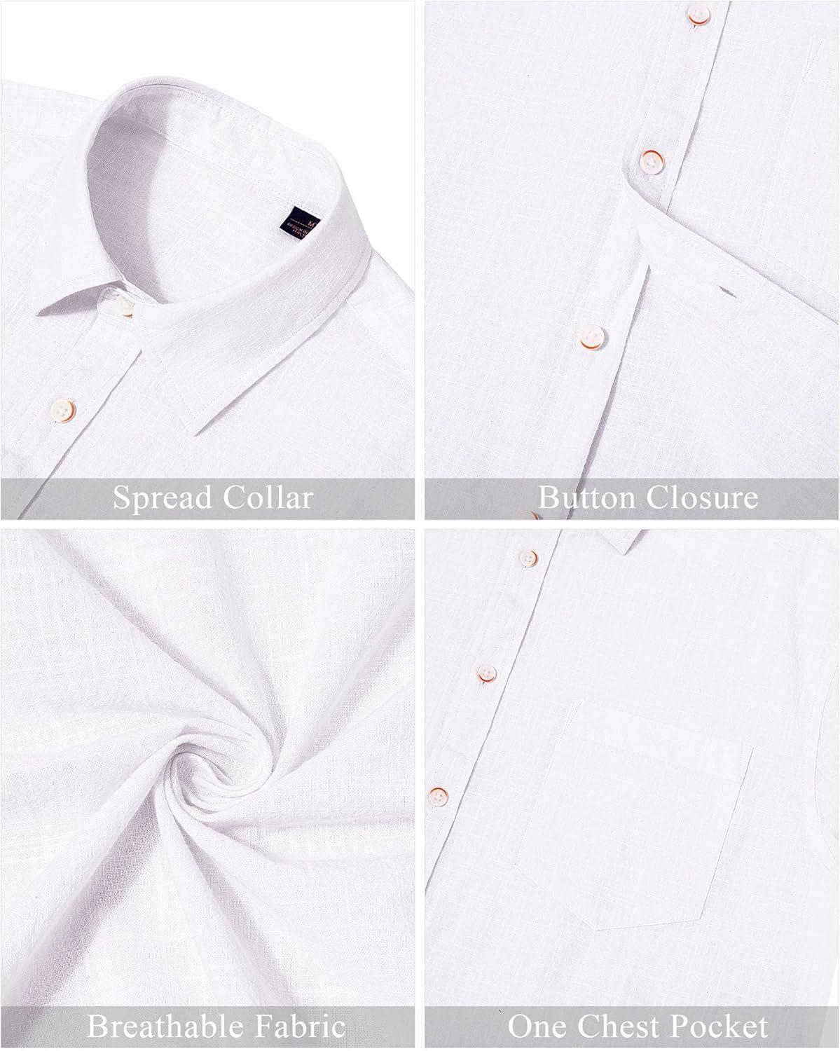 imageJVER Mens Cotton Linen Short Sleeve Shirts Casual Lightweight Button Down Shirts Vacation Beach Summer Tops with PocketRose