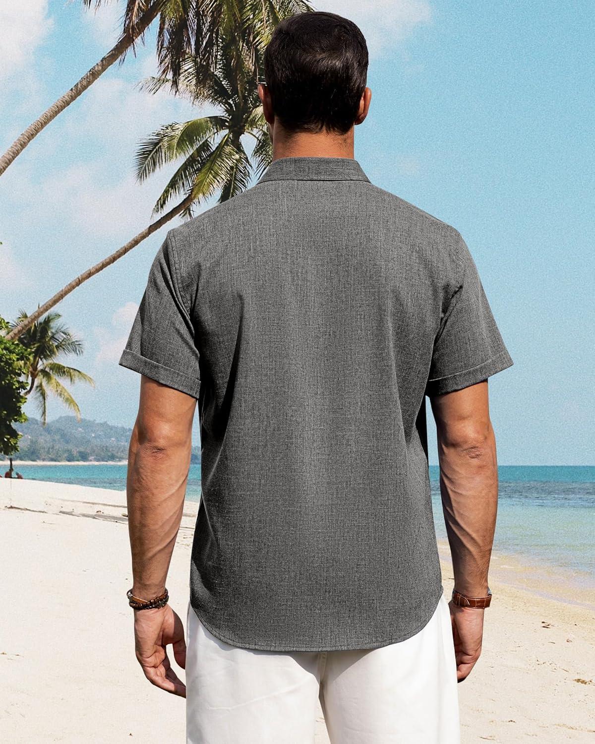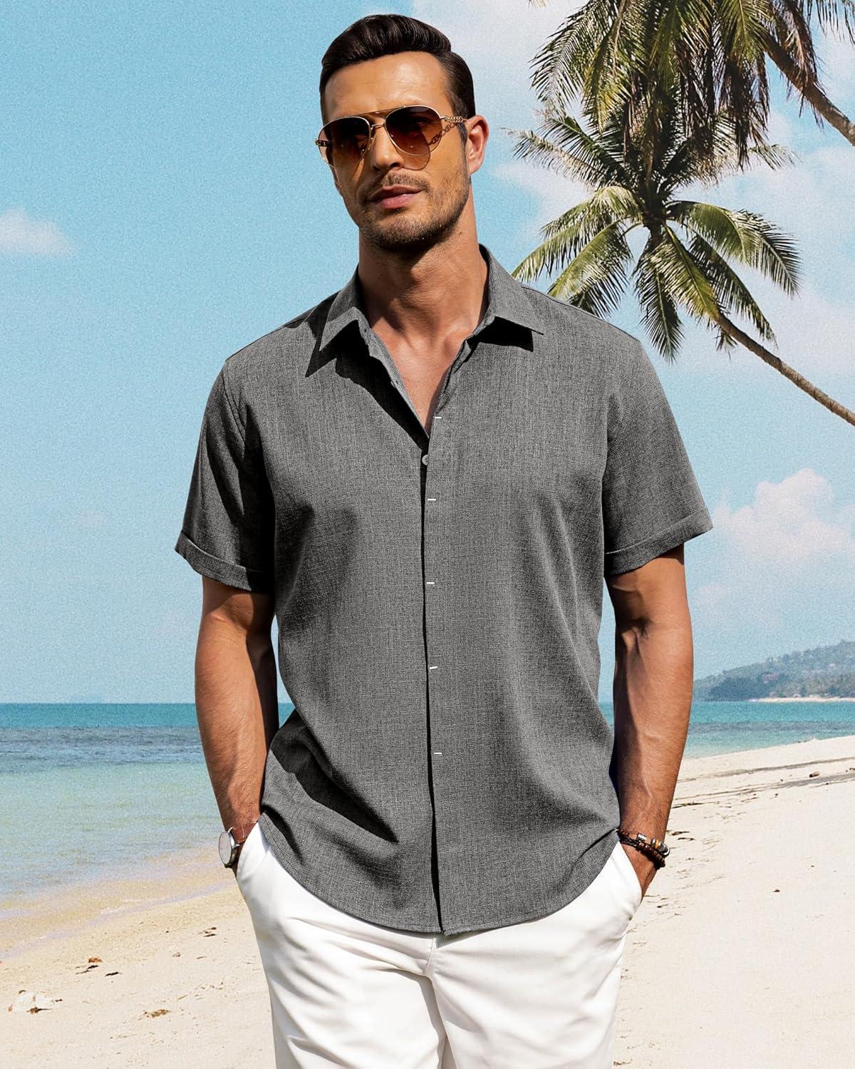 J.VER Men's Linen Shirts Casual Short Sleeve Button Down Shirt Beach Summer Vacation Holiday Wedding Cotton Tops(Grey)