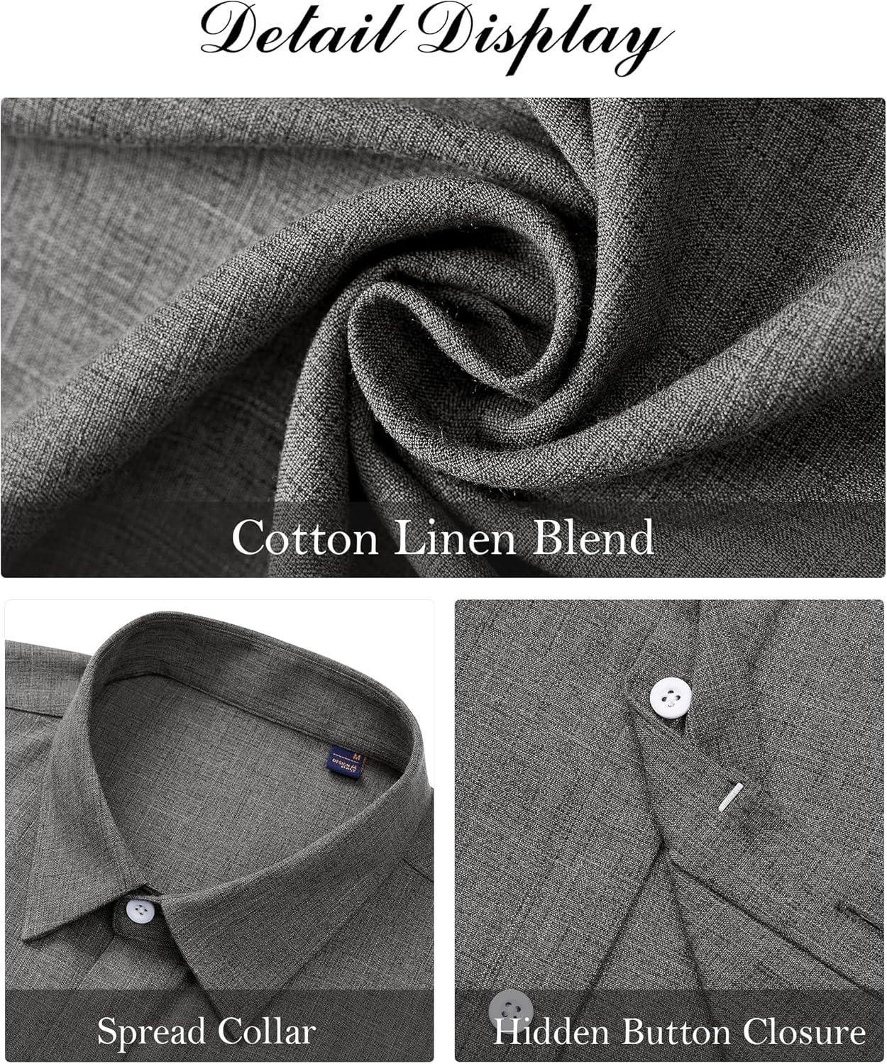J.VER Men’s Linen Shirts Casual Short Sleeve Button Down Shirt Beach Summer Vacation Holiday Wedding Cotton Tops(Grey)