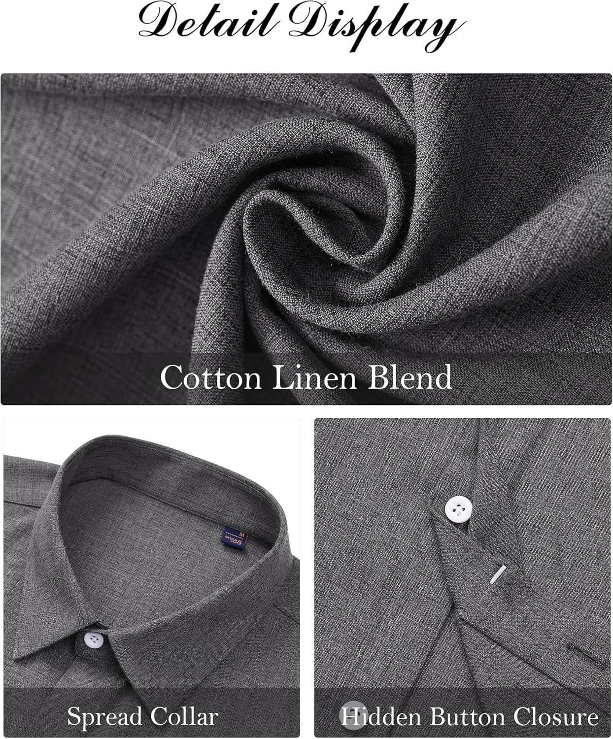 J.VER Men's Linen Shirts Casual Short Sleeve Button Down Shirt Beach Summer Vacation Holiday Wedding Cotton Tops(Light Grey)