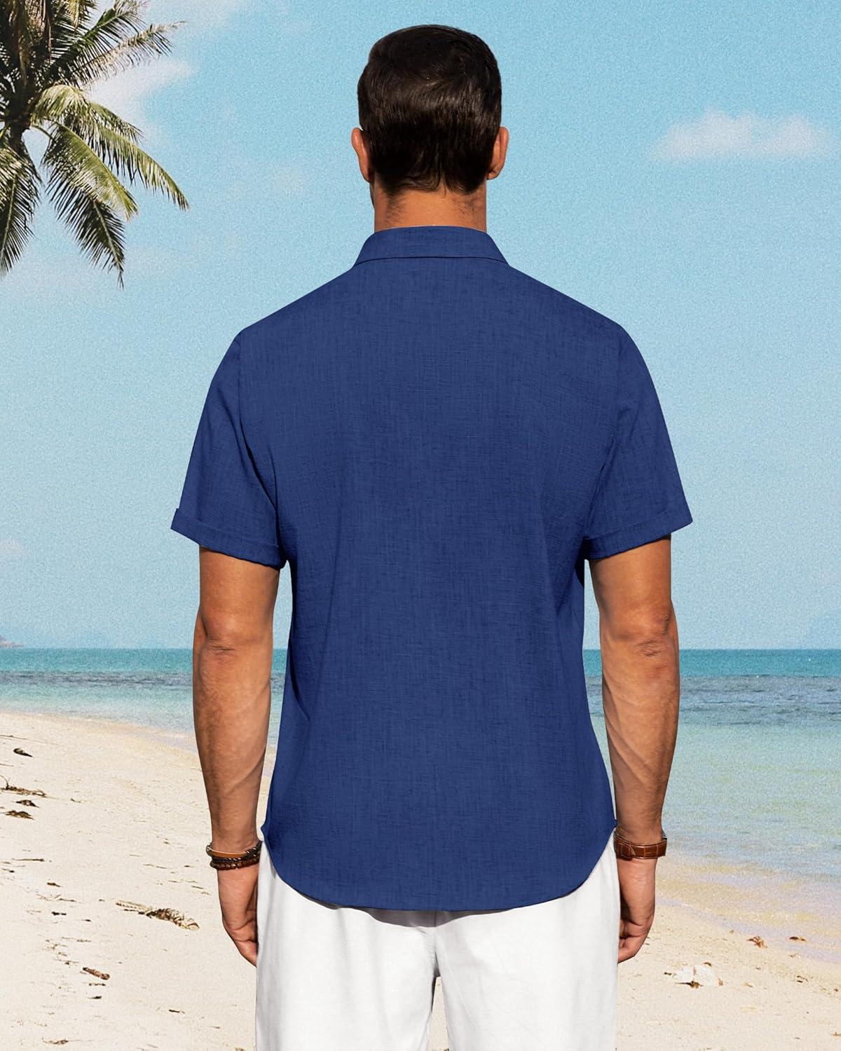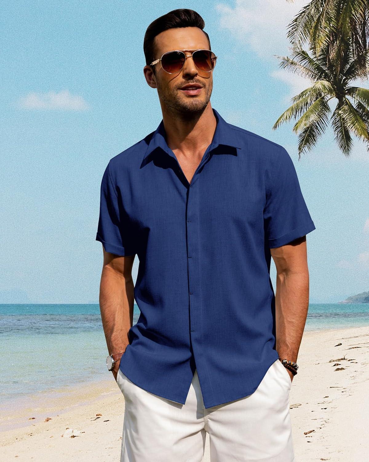 J.VER Men's Linen Shirts Casual Short Sleeve Button Down Shirt Beach Summer Vacation Holiday Wedding Cotton Tops(Royal Blue)