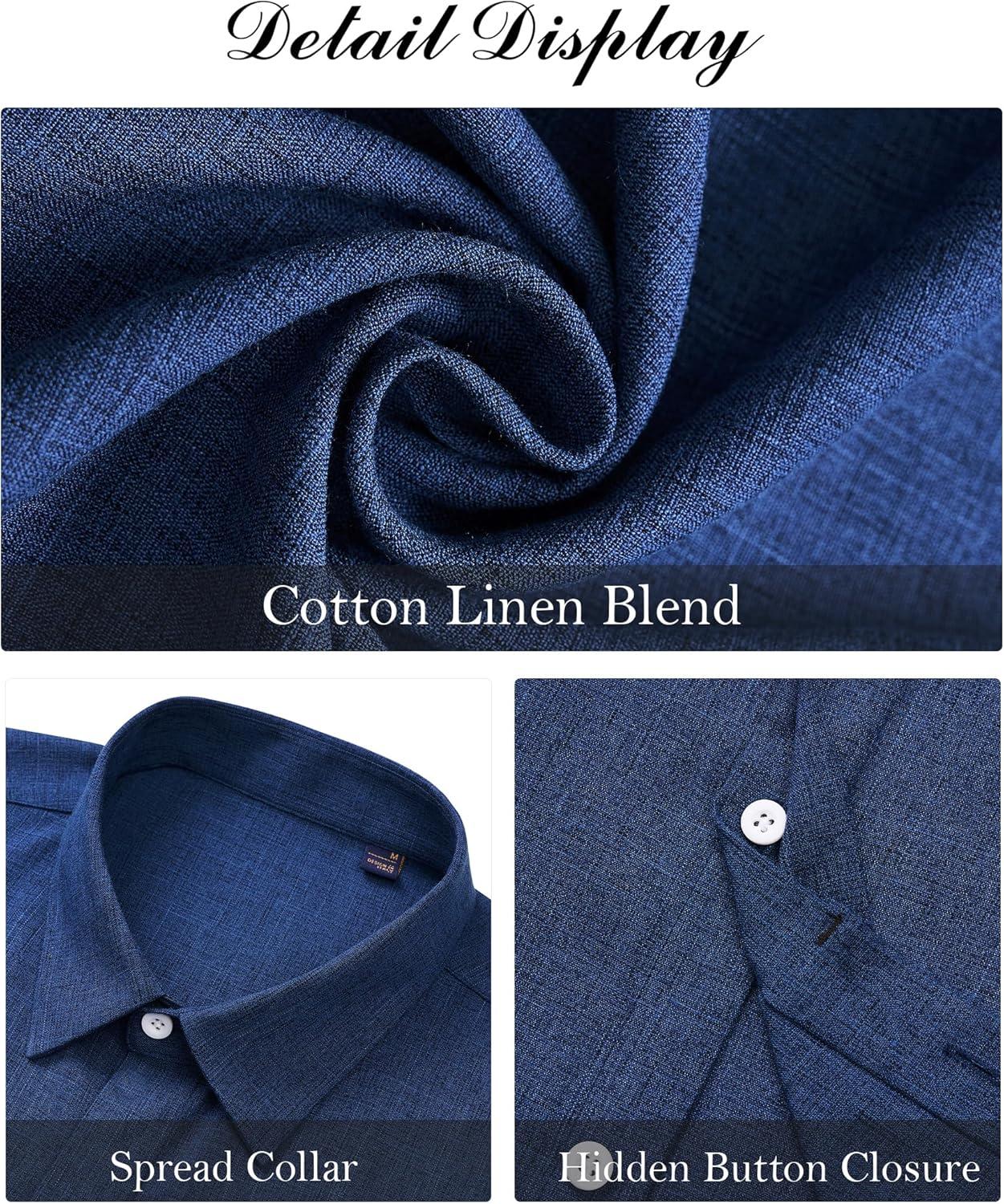 J.VER Men’s Linen Shirts Casual Short Sleeve Button Down Shirt Beach Summer Vacation Holiday Wedding Cotton Tops(Royal Blue)
