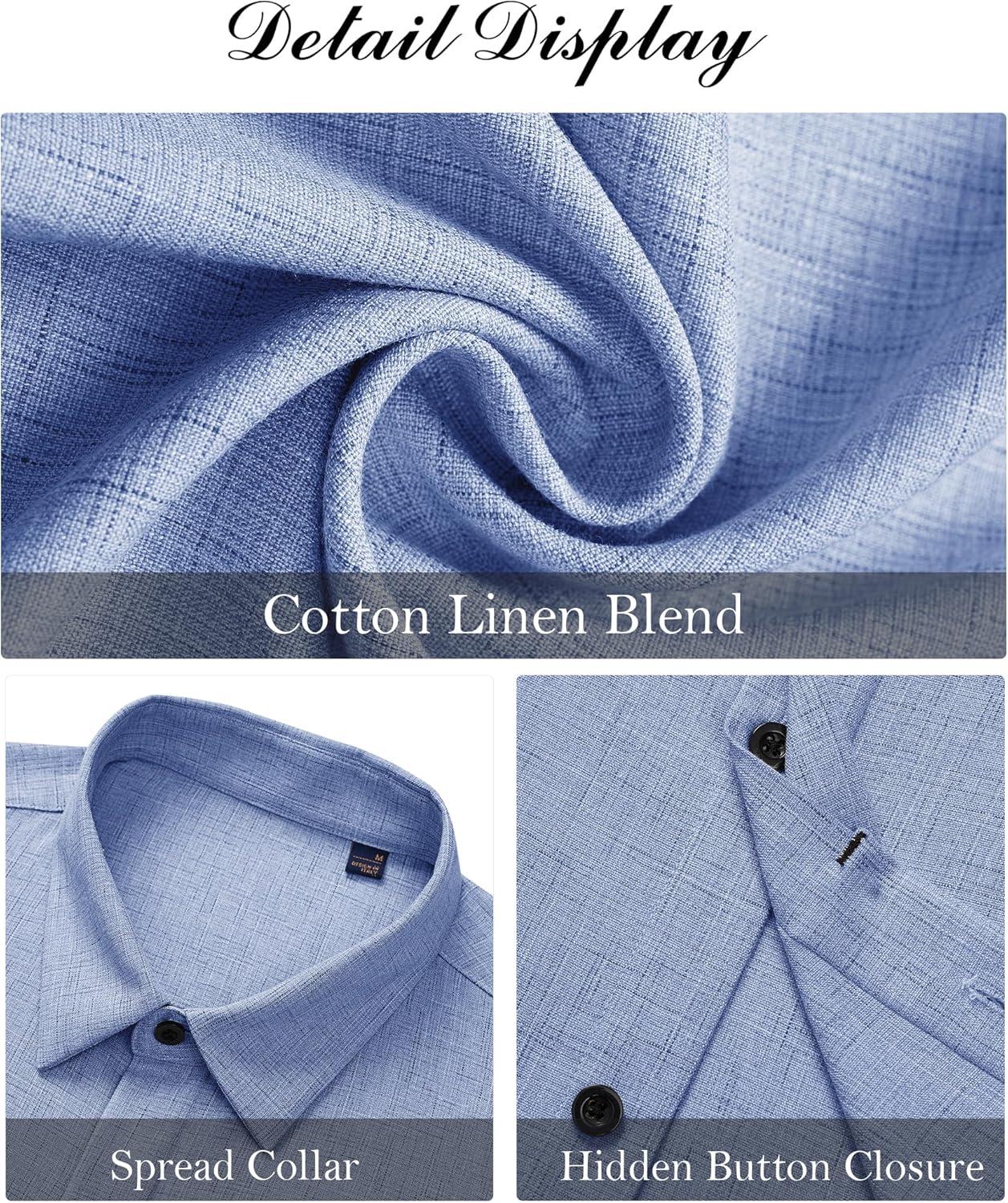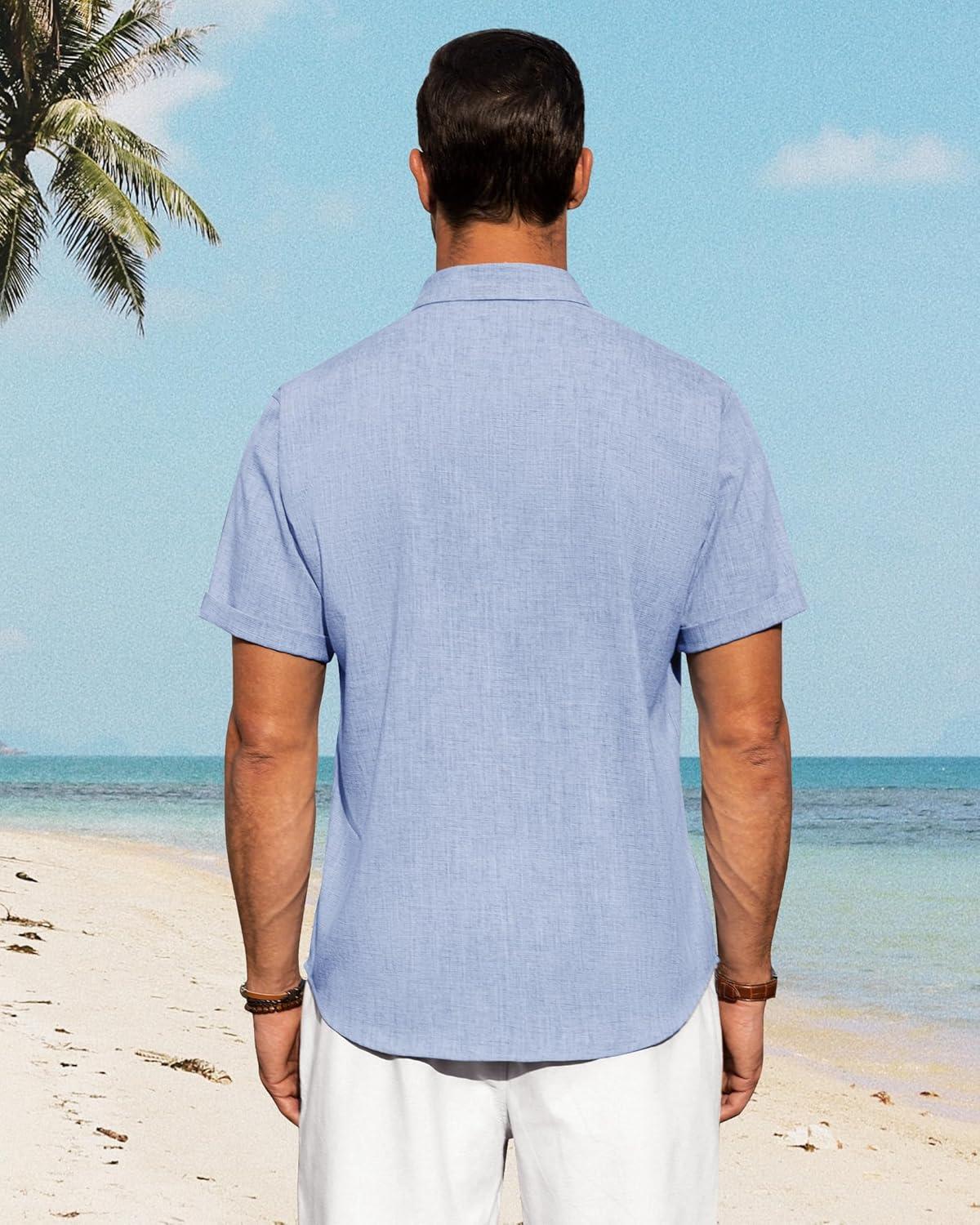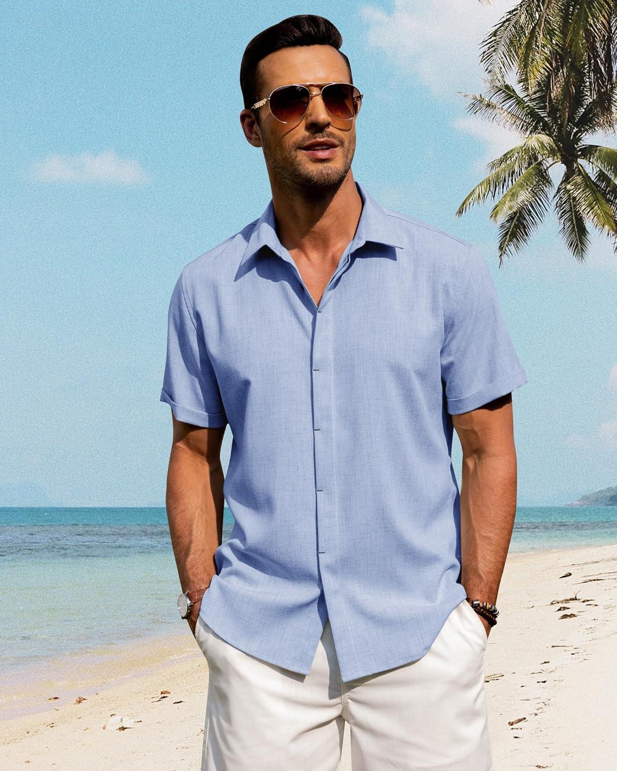 J.VER Men's Linen Shirts Casual Short Sleeve Button Down Shirt Beach Summer Vacation Holiday Wedding Cotton Tops(Sky Blue)