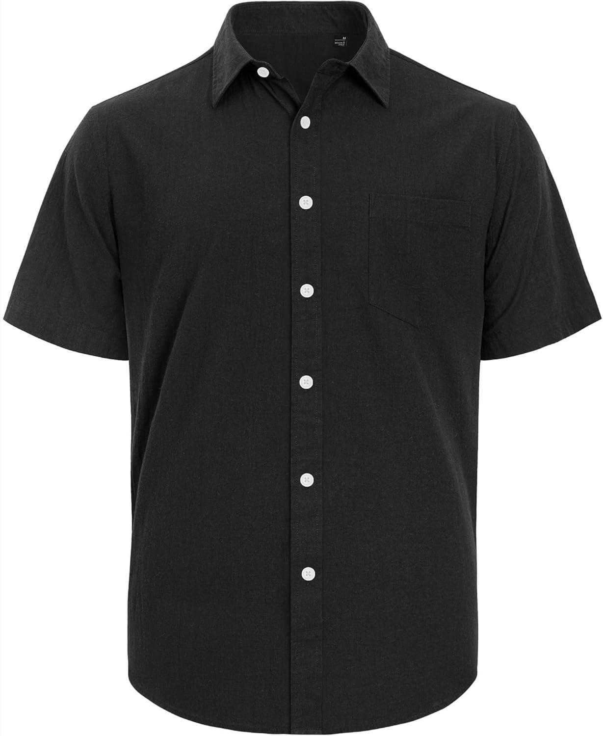 J.VER Men’s Linen Short Sleeve Shirts Cotton Casual Lightweight Button Down Shirt Beach Vacation Summer Tops with Pocket(Black)