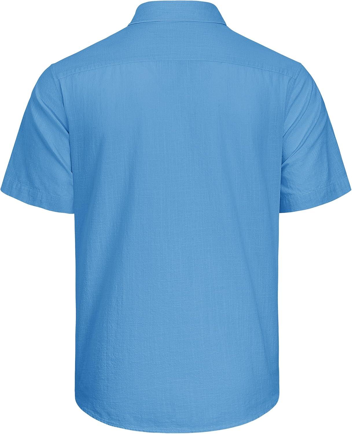 J.VER Men’s Linen Short Sleeve Shirts Cotton Casual Lightweight Button Down Shirt Beach Vacation Summer Tops with Pocket(Cobalt Blue)