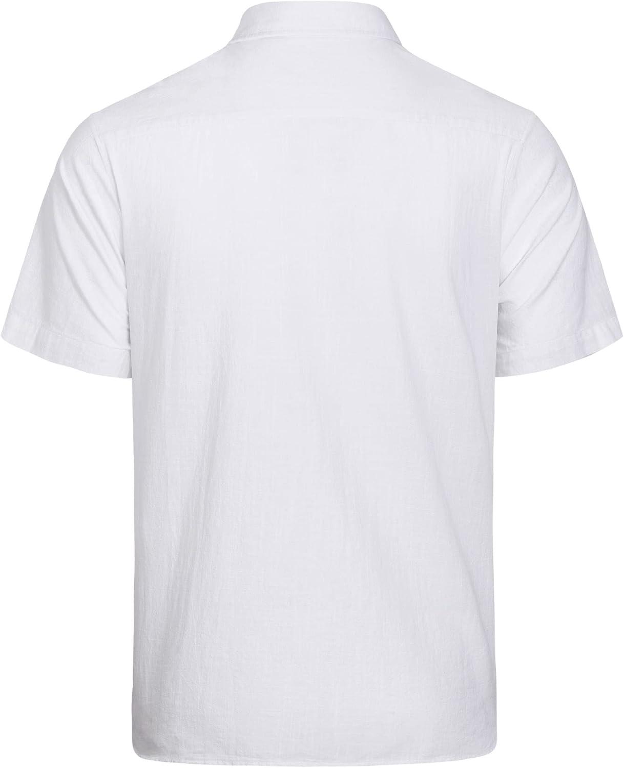 J.VER Men’s Linen Short Sleeve Shirts Cotton Casual Lightweight Button Down Shirt Beach Vacation Summer Tops with Pocket(White)