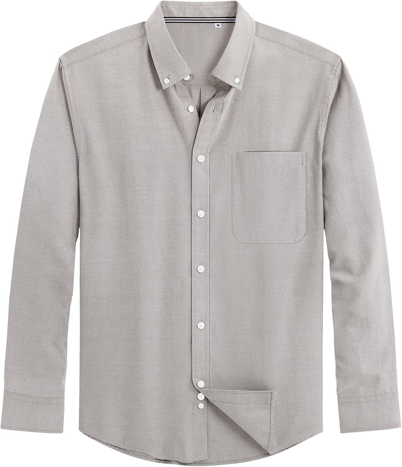 J.VER Men's Oxford Shirt Solid Casual Button Down Collar Shirts Long Sleeve Dress Shirts with Pocket(Grey Khaki)