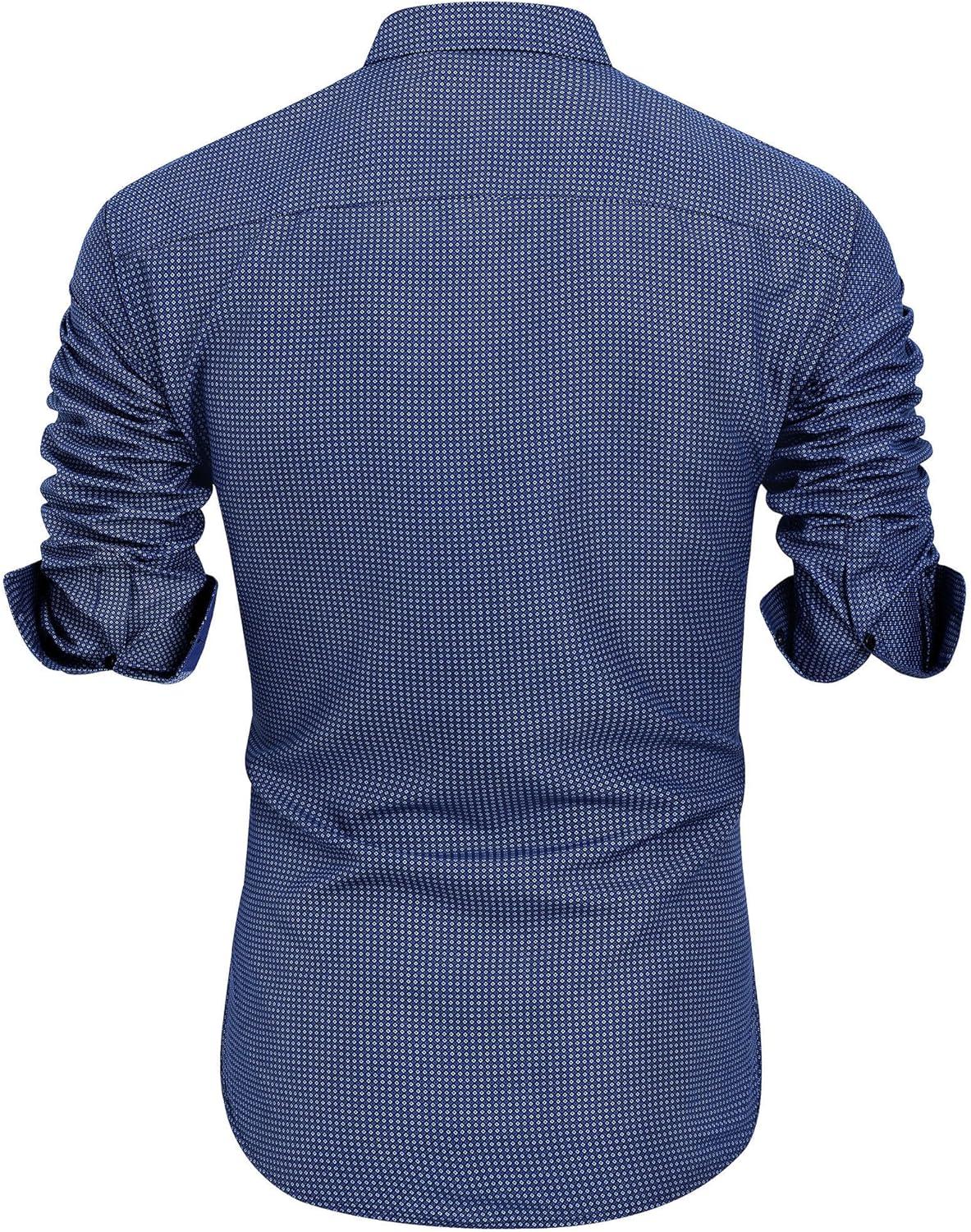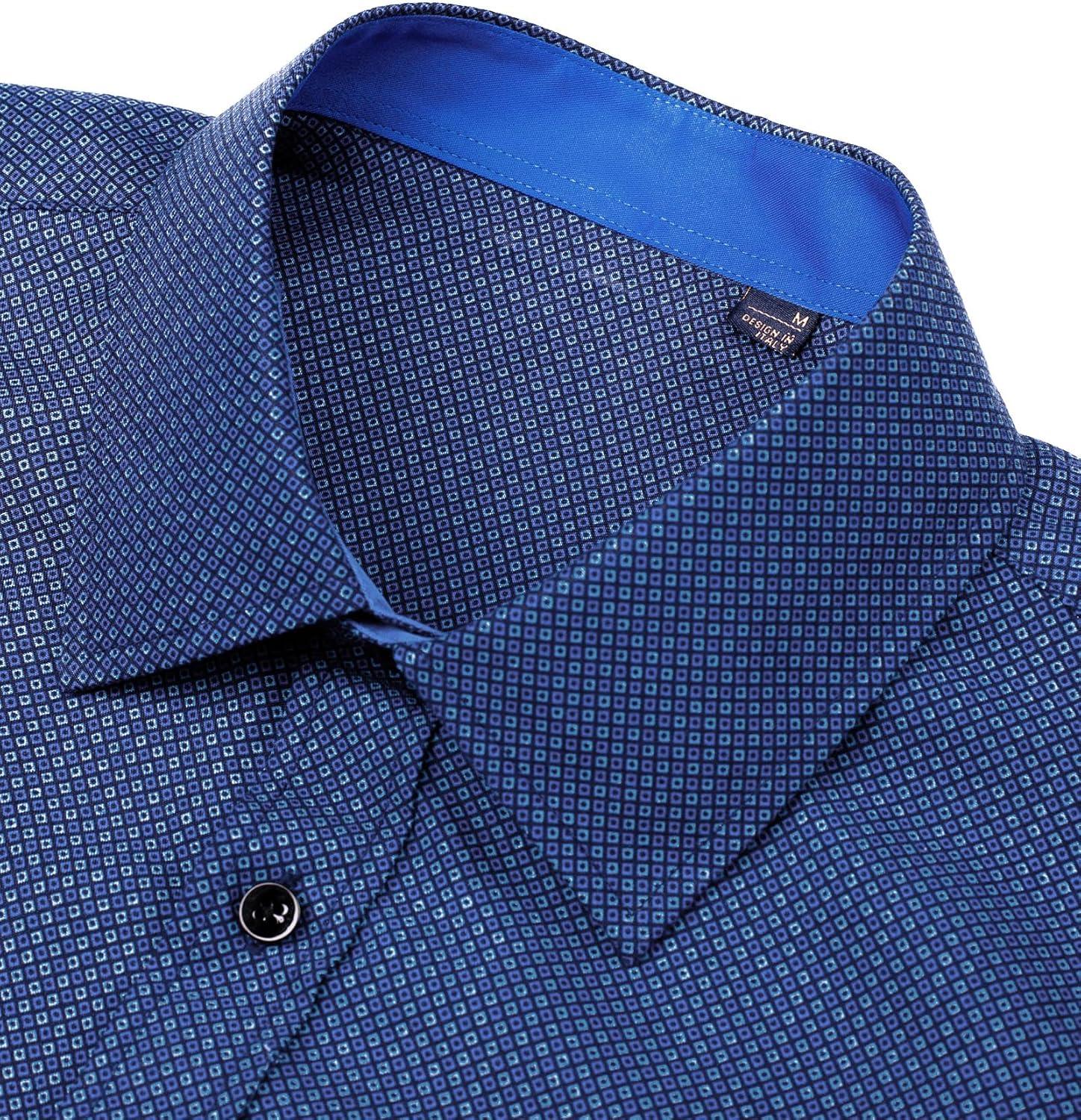 J.VER Men's Printed Dress Shirts Casual Long Sleeve Stylish Button Down Shirt(Blue+printed)
