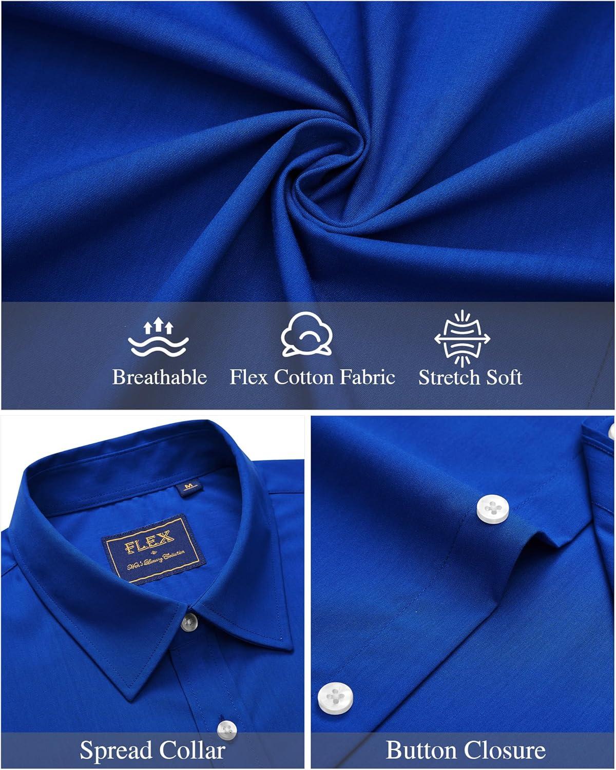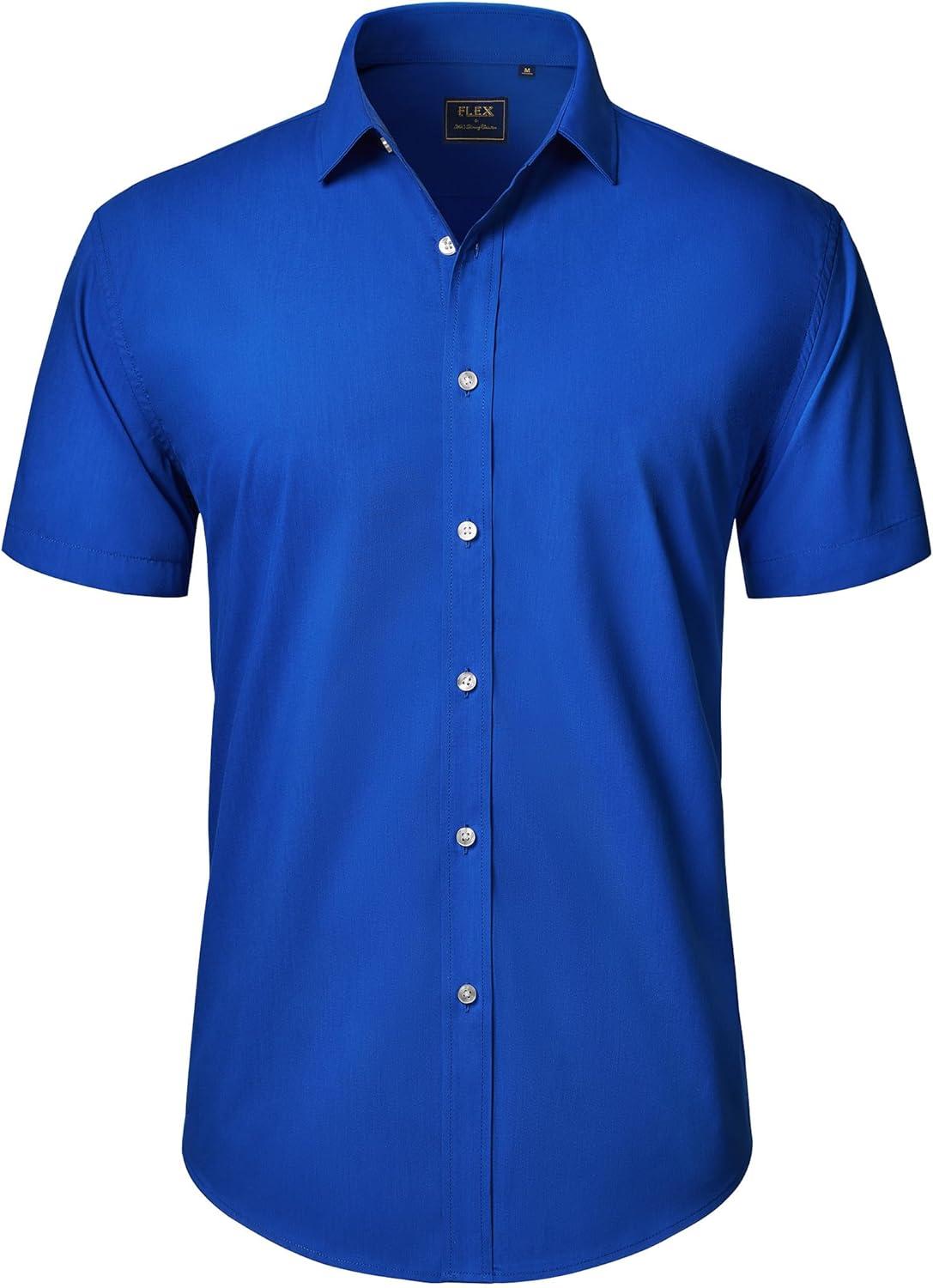 J.VER Mens Short Sleeve Button Down Shirt Stretch Business Casual Dress Shirts Solid Summer Wedding Prom Tops(Royal Blue)