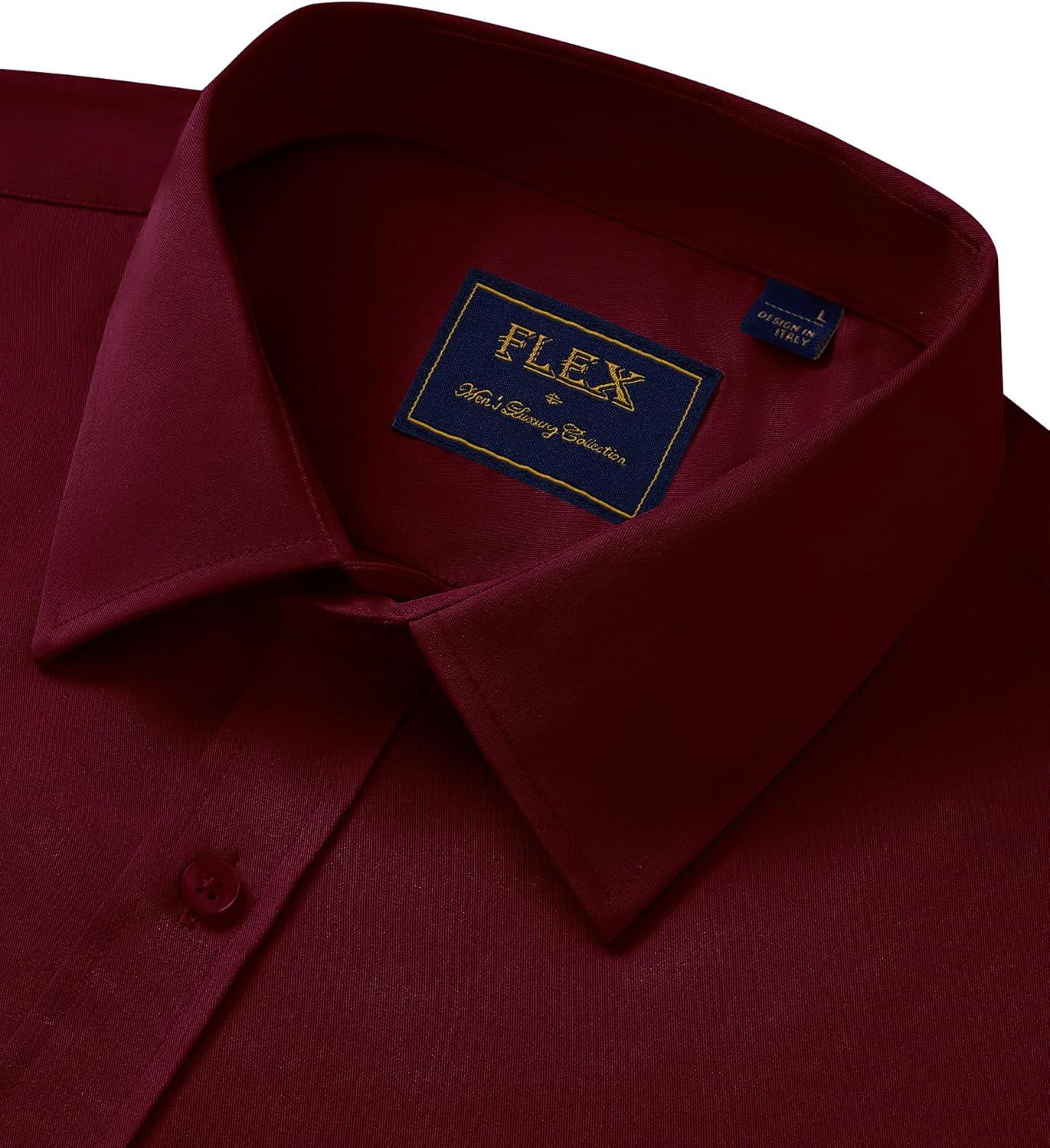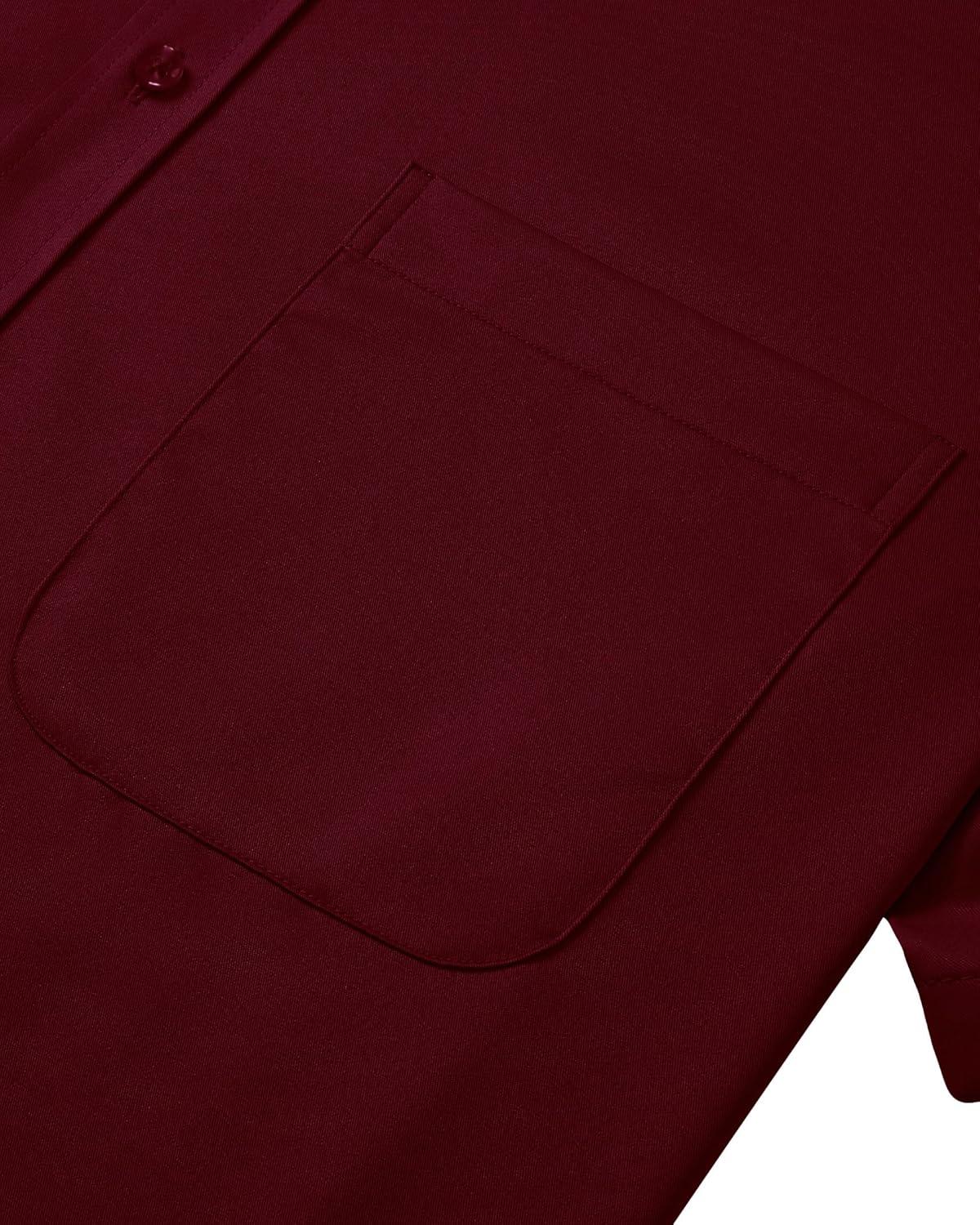 J.VER Men’s Short Sleeve Dress Shirts Stretch Casual Button Down Shirts with Pocket for Business Wedding(Burgundy)