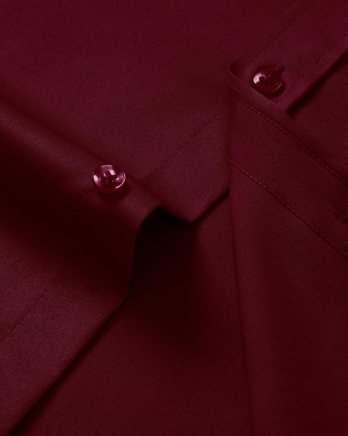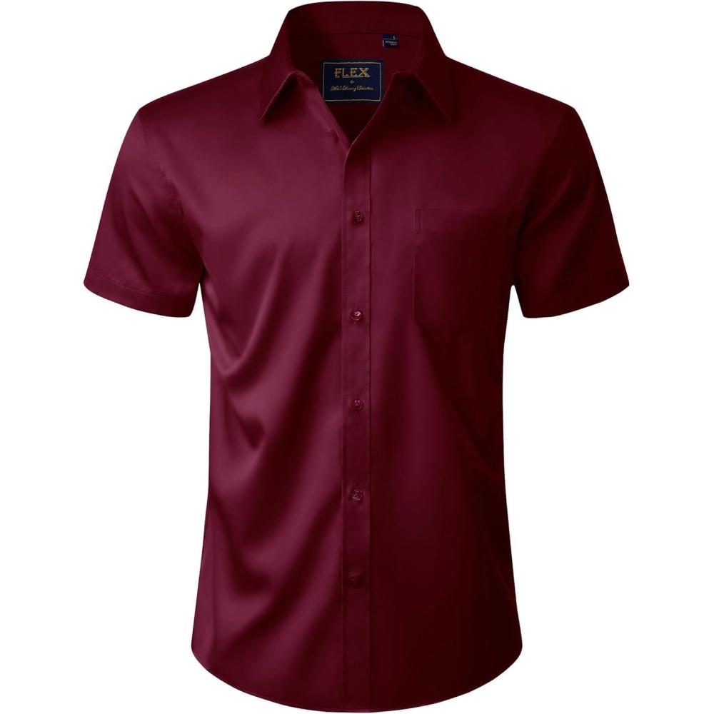 J.VER Men's Short Sleeve Dress Shirts Stretch Casual Button Down Shirts with Pocket for Business Wedding(Burgundy)