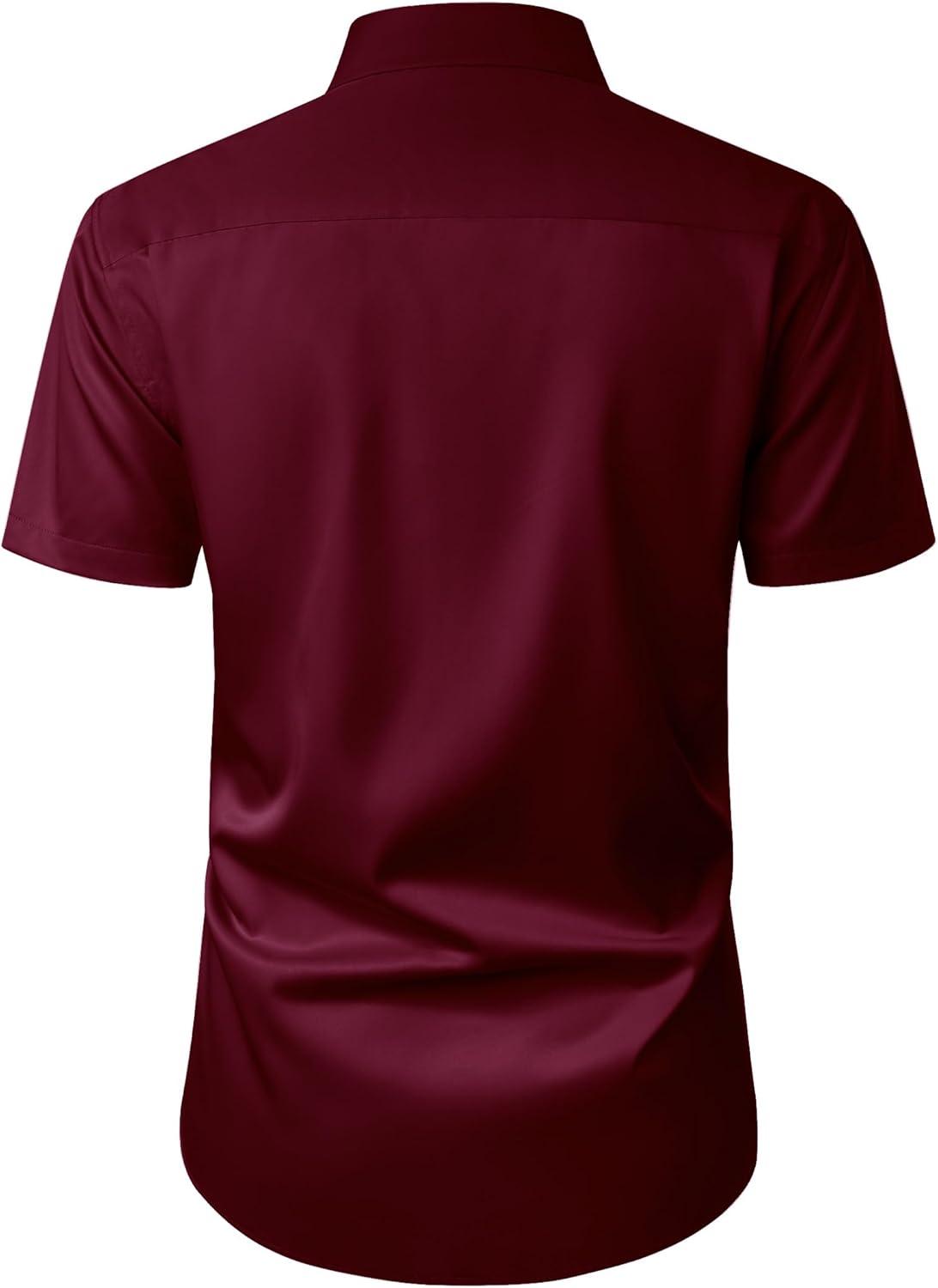 imageJVER Mens Short Sleeve Dress Shirts Stretch Casual Button Down Shirts with Pocket for Business WeddingBurgundy